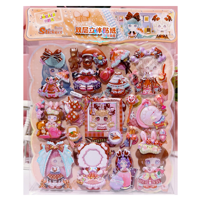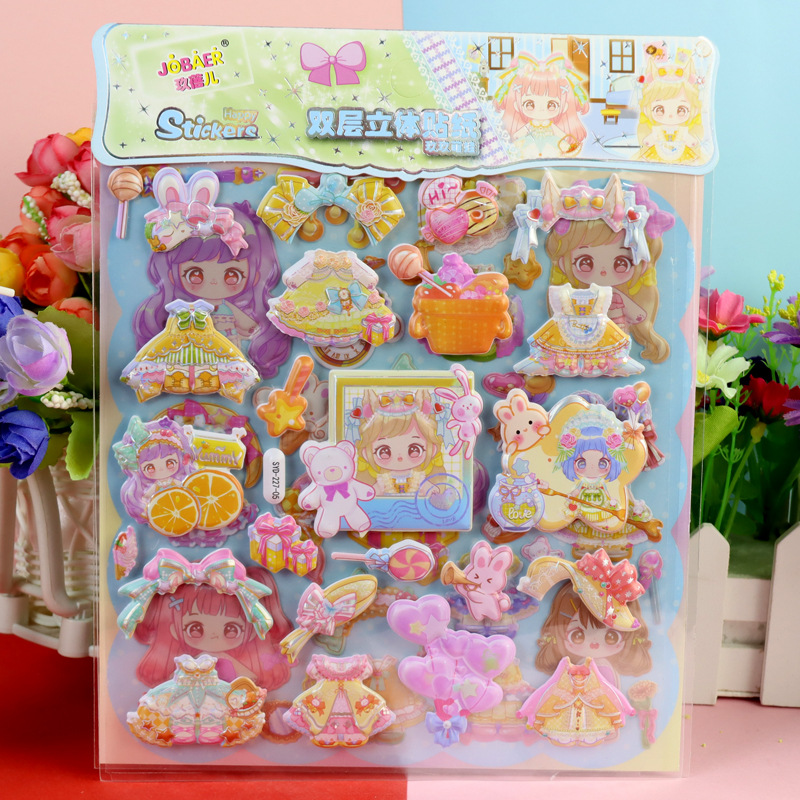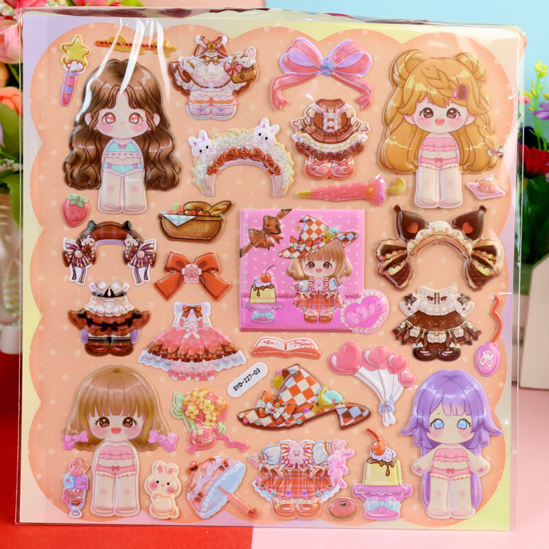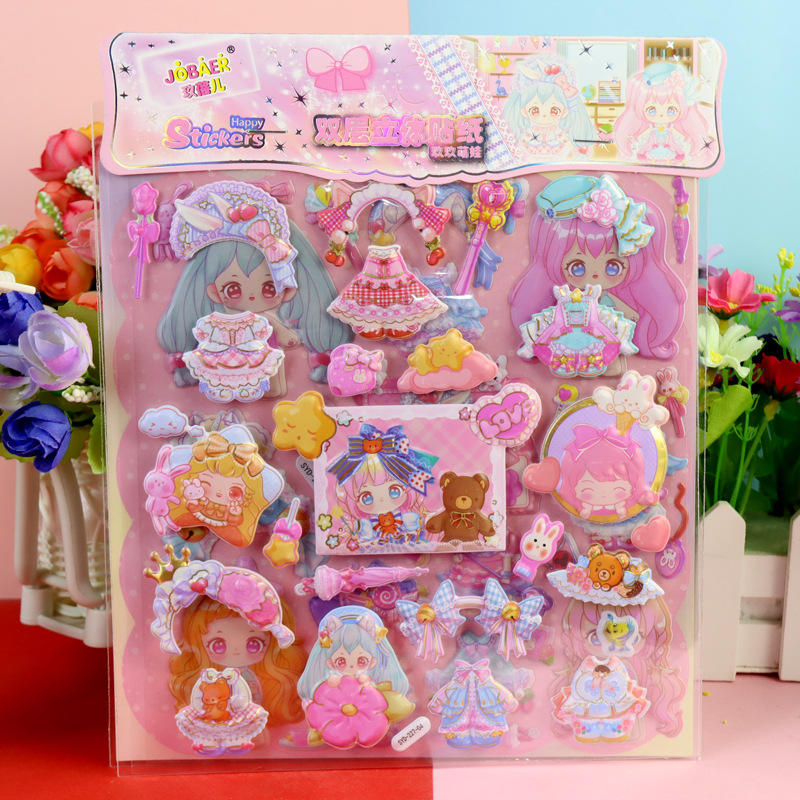 Jiujiu Moe 아기 원피스 업 스티커 소녀 만화 3 차원 거품 스티커 더블 레이어 어린이 냉동 공주 딸기 곰