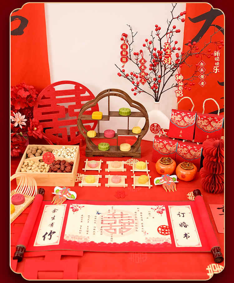 약혼 장식품 전체 디저트 테이블 배열 과자 감 웨딩 케이크 디저트 중국 웨딩 테이블 웨딩 연회 용품