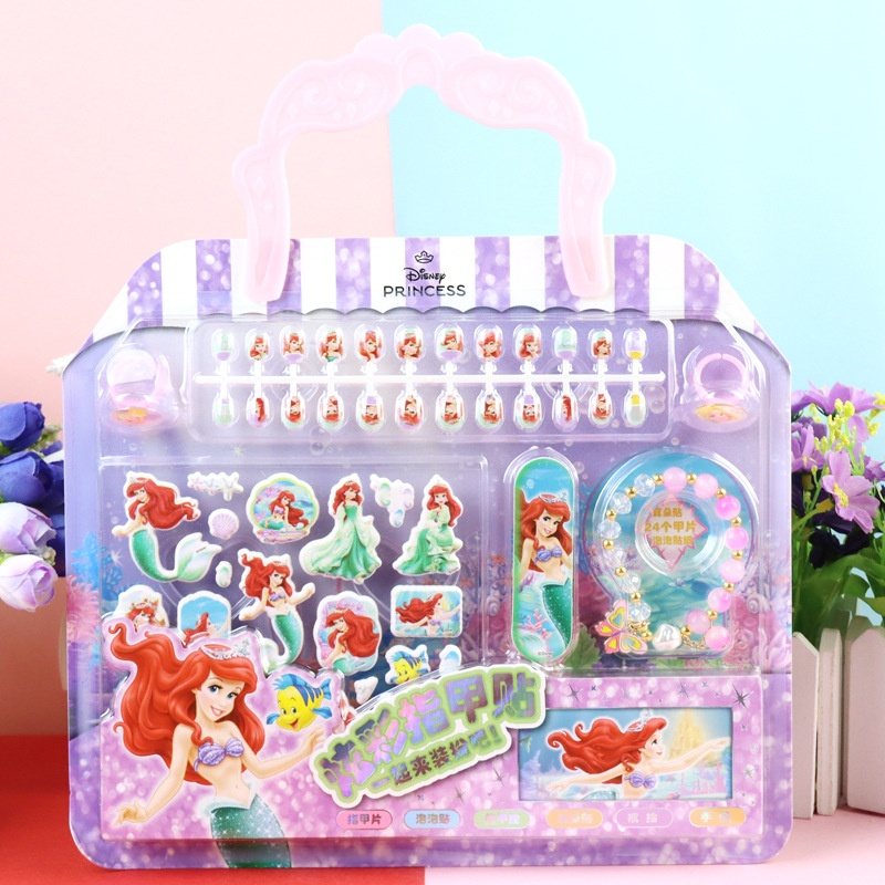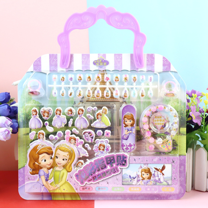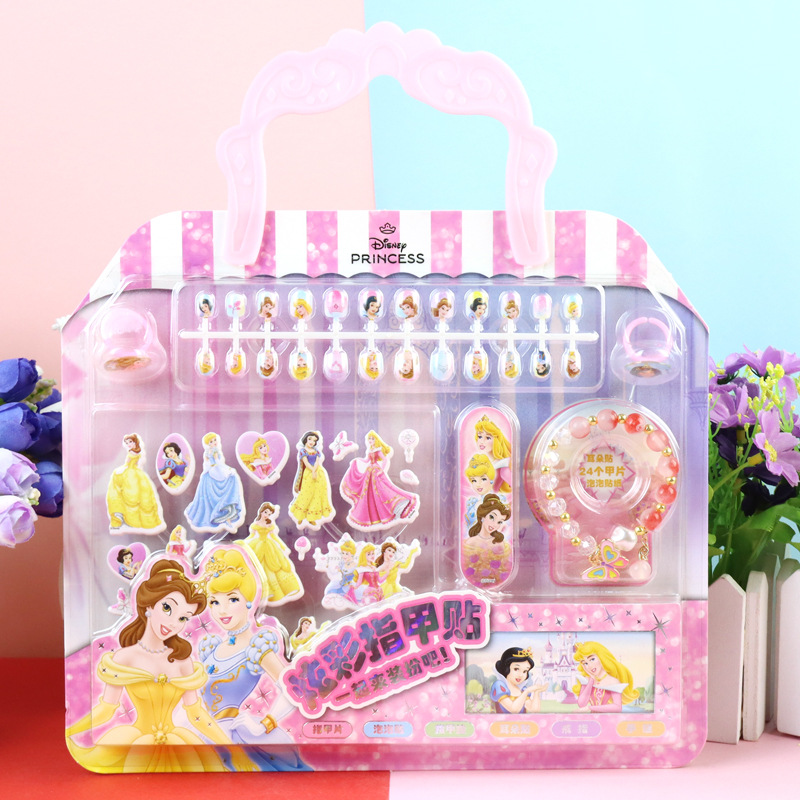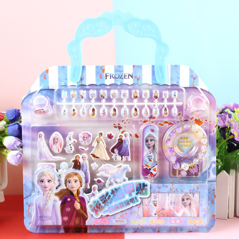 어린이 만화 냉동 공주 네일 링 보석 벌금 팔찌 손톱 가짜 세트 네일 스티커스토어 가기