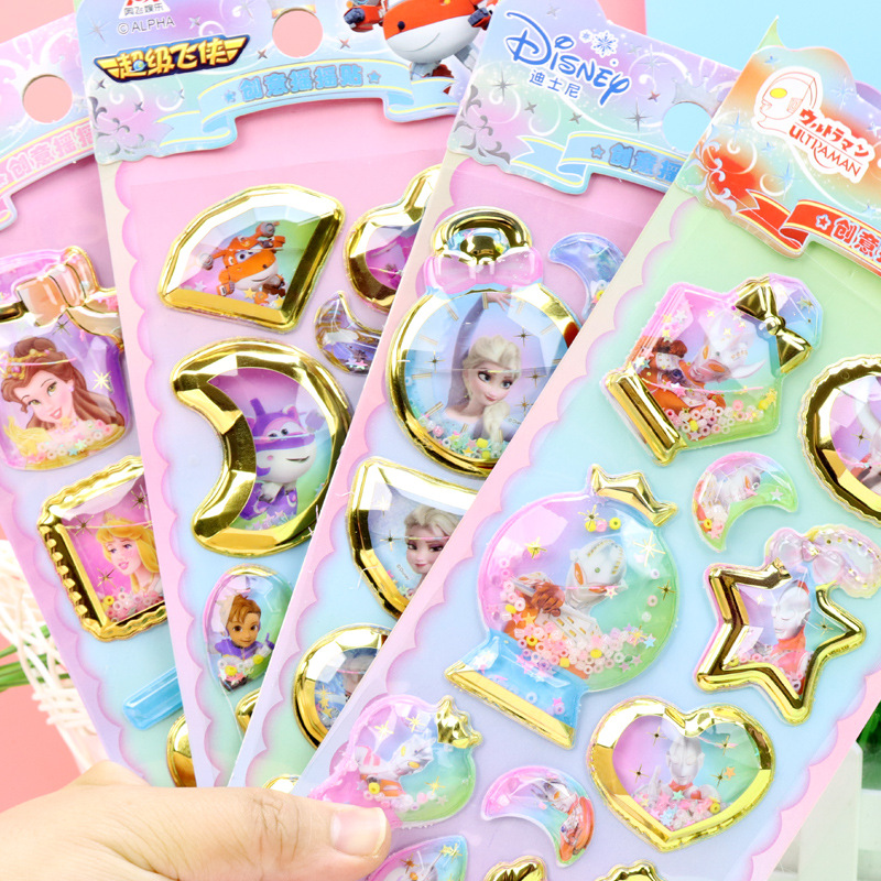 냉동 공주 피터 팬 어린이 만화 울트라 맨 스테레오 브론징 스티커 흔들리는 물 주입 스티커
