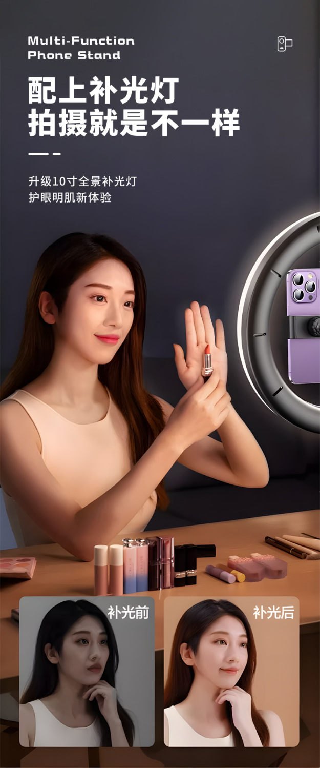 오디오 및 비디오 셀카 스틱 사진을 흔드는 라이브 휴대 전화 브래킷 코너 데스크탑 바닥 삼각대 휴대용 조명 앵커