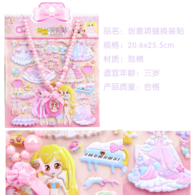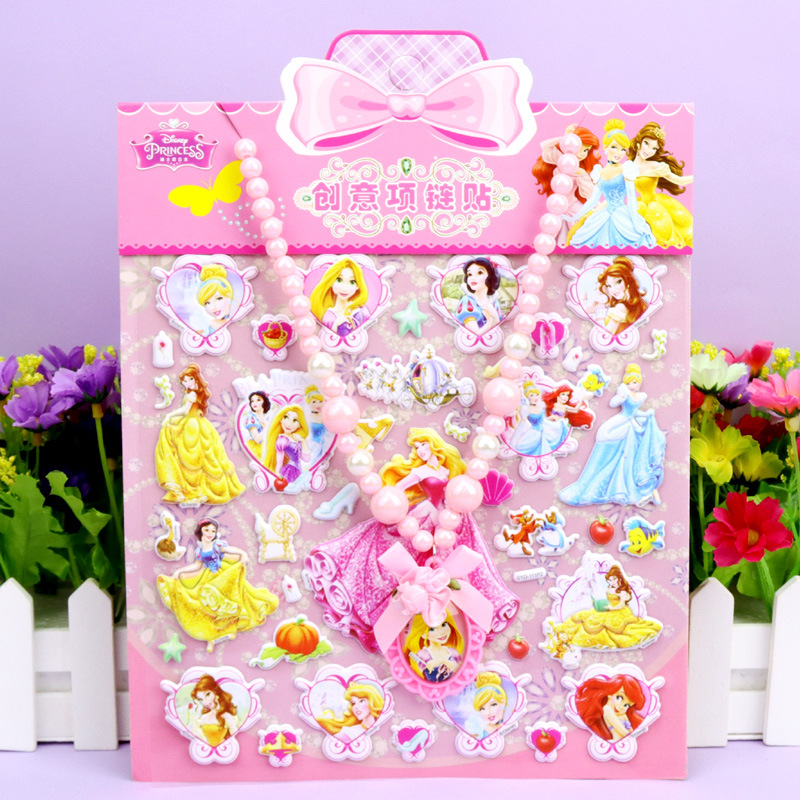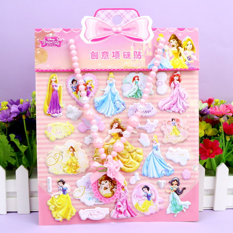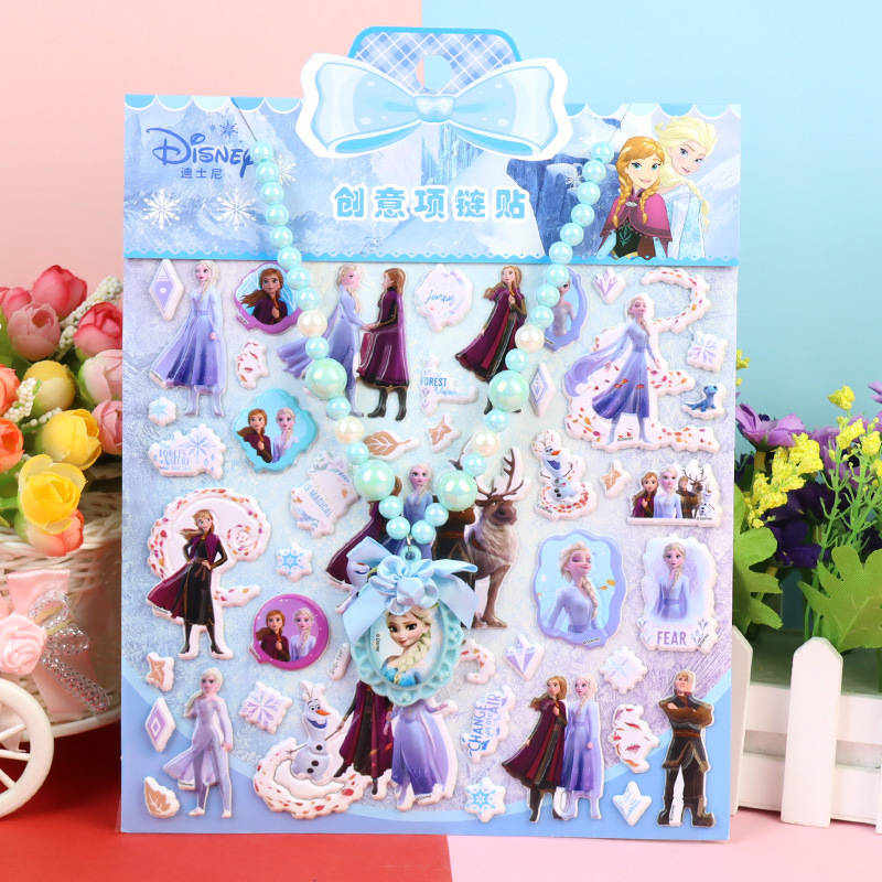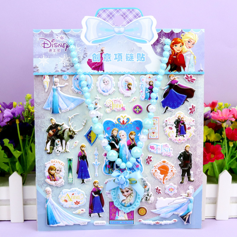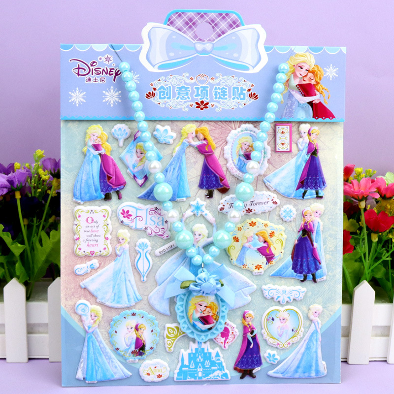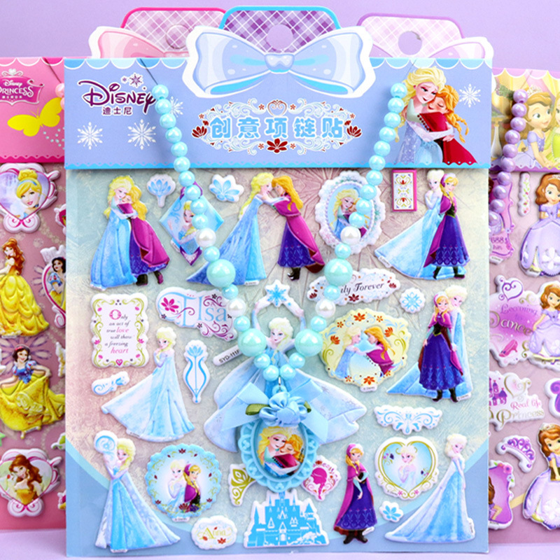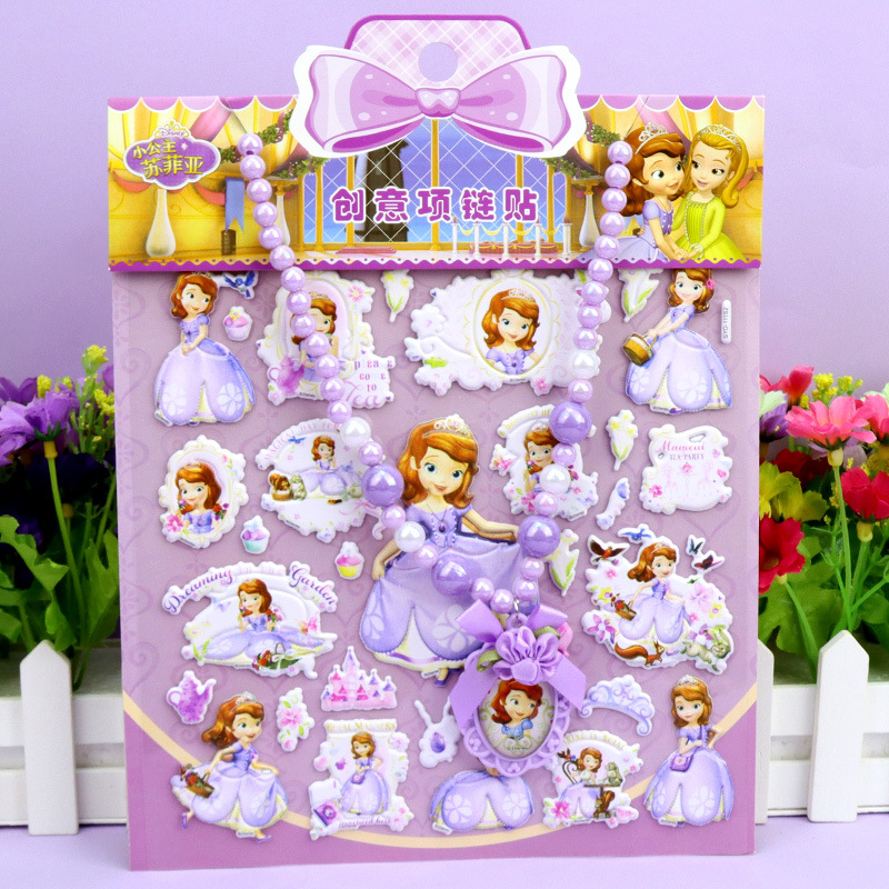 어린이 만화 스테레오 냉동 공주 소피아 스티커 목걸이 소프트 코튼 보너스 소녀 거품 스티커
