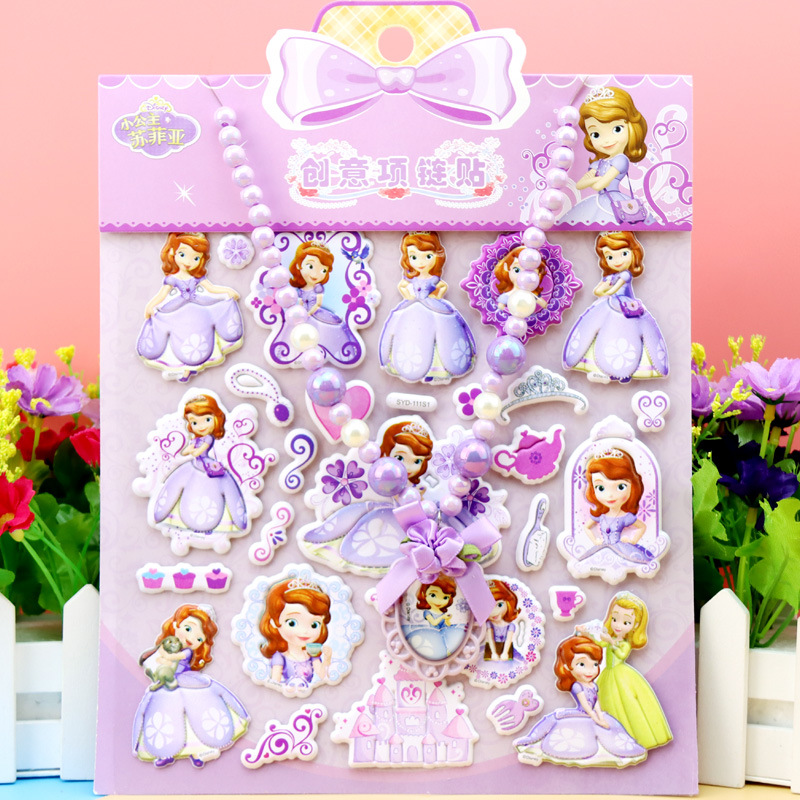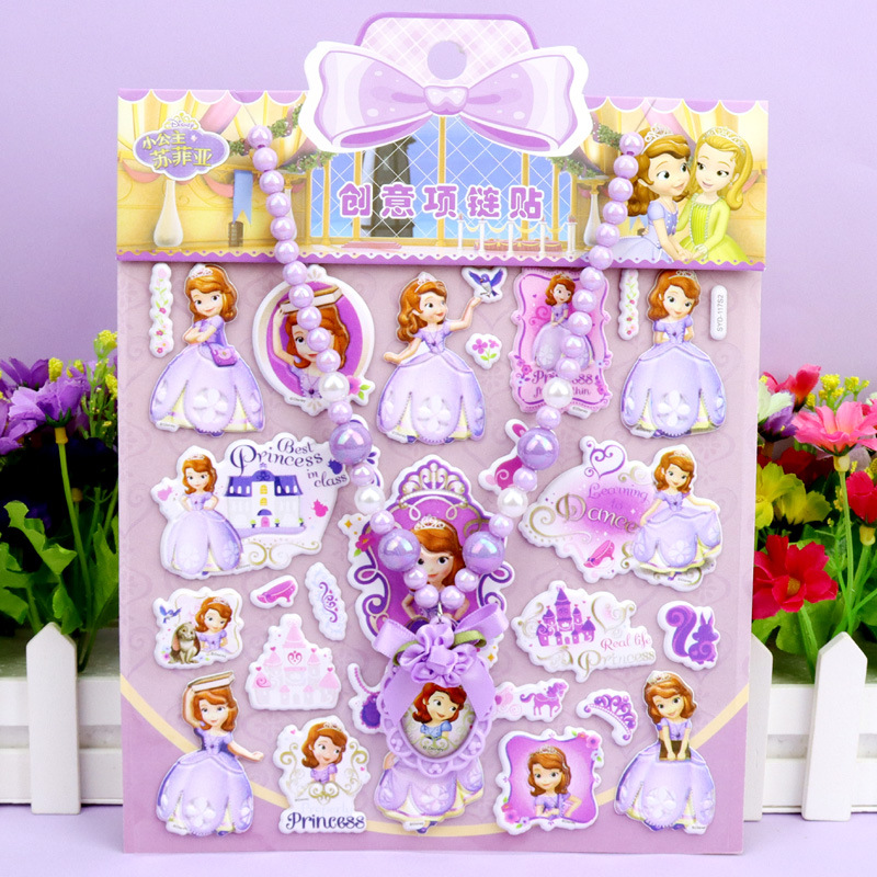 어린이 만화 스테레오 냉동 공주 소피아 스티커 목걸이 소프트 코튼 보너스 소녀 거품 스티커스토어 가기