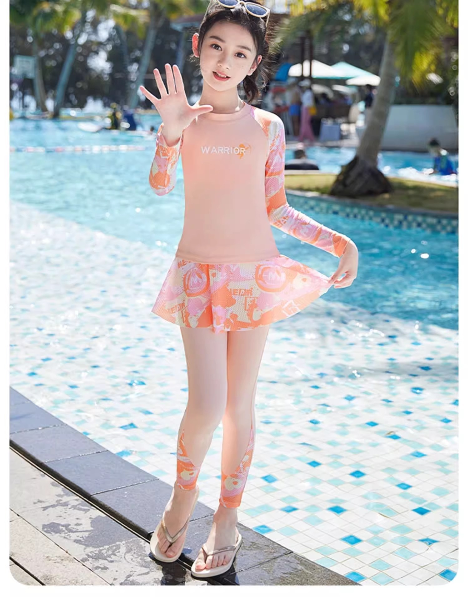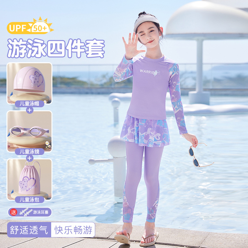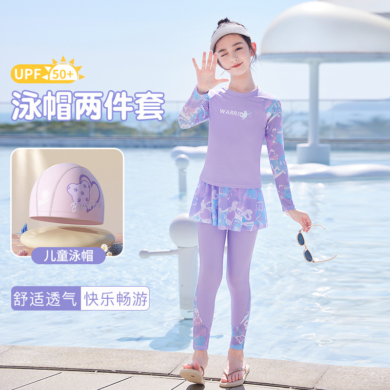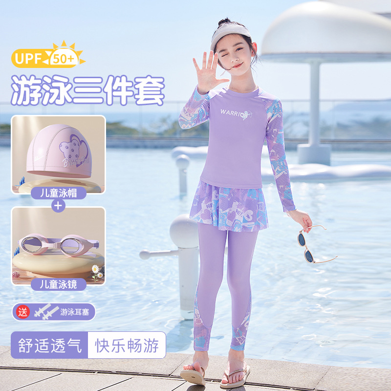 아동용 수영복 여아용 분리형 긴팔 수영복 2025 신상 중학생 여아 수영복 세트 도매스토어 가기