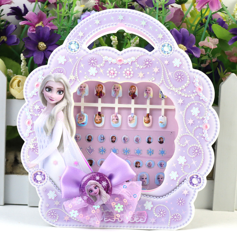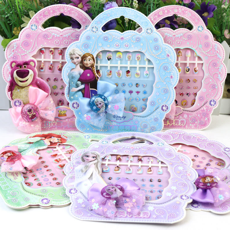어린이 만화 냉동 네일 스티커 공주 딸기 베어 네일 가짜 세트 헤어핀 네일 스티커