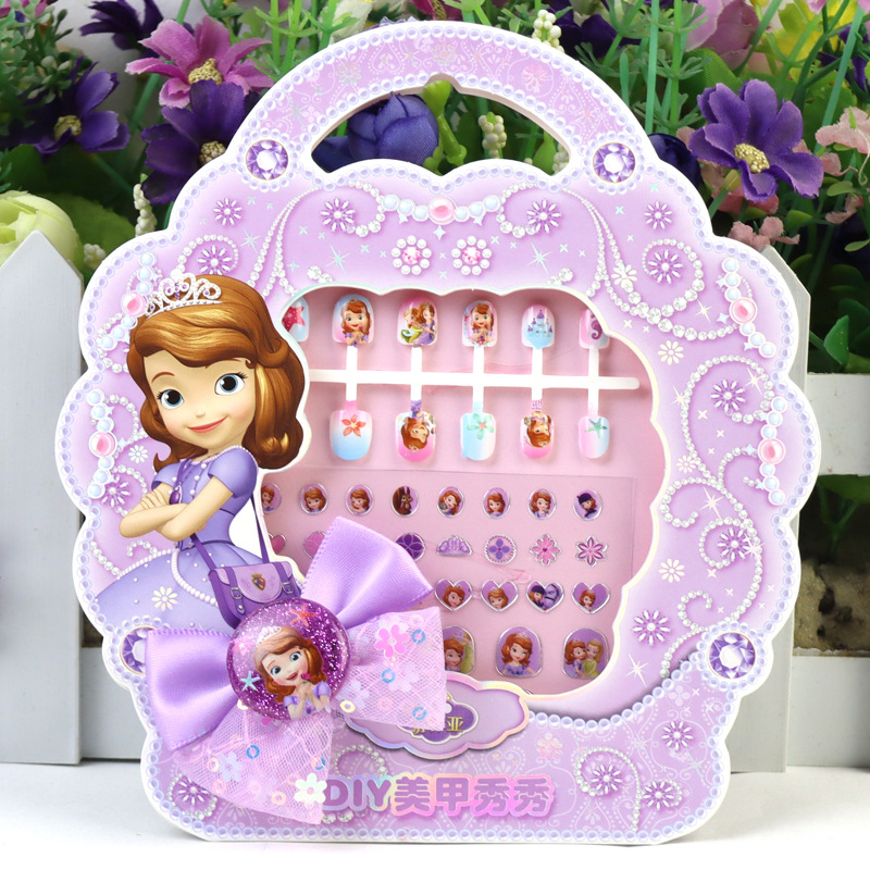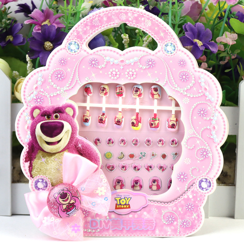 어린이 만화 냉동 네일 스티커 공주 딸기 베어 네일 가짜 세트 헤어핀 네일 스티커스토어 가기