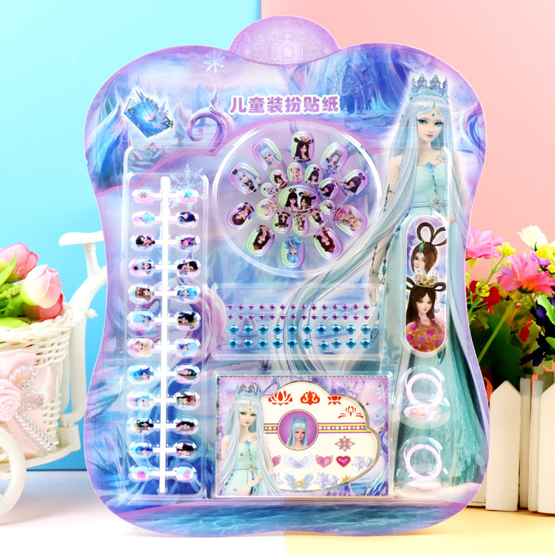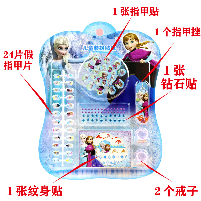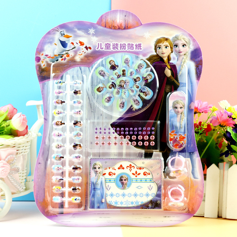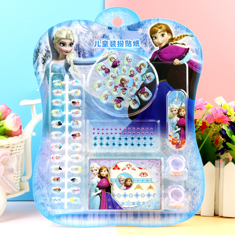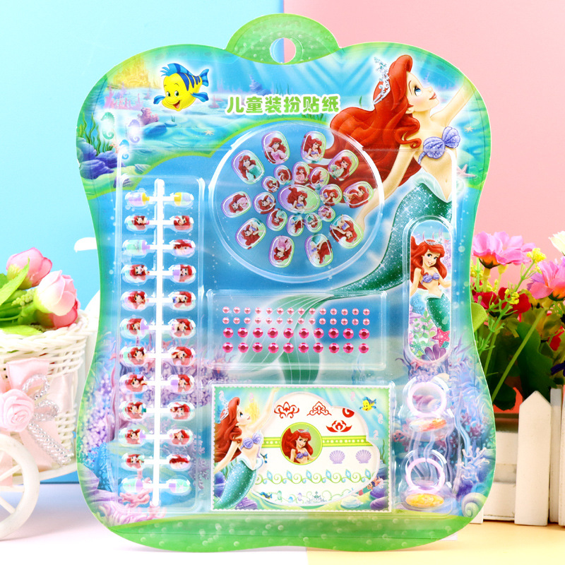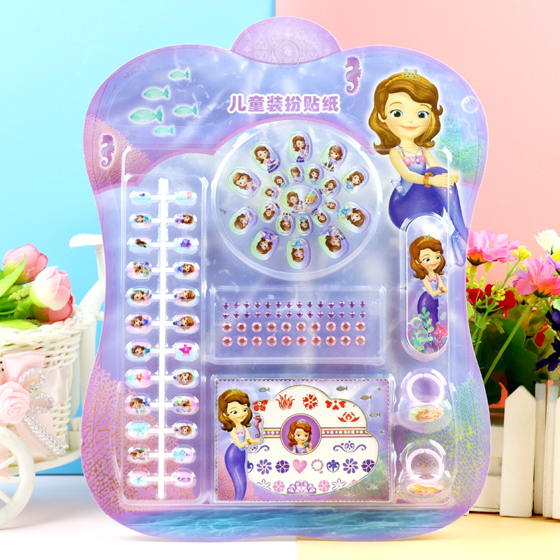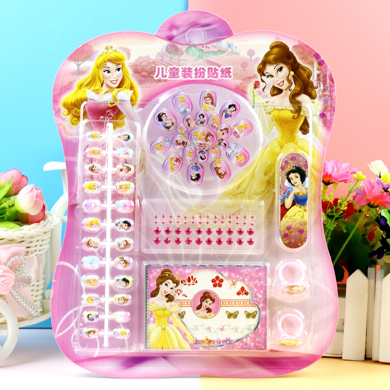 어린이 만화 공주 손 문신 네일 스티커 링 보석 네일 가짜 세트 네일 스티커 네일 좌절