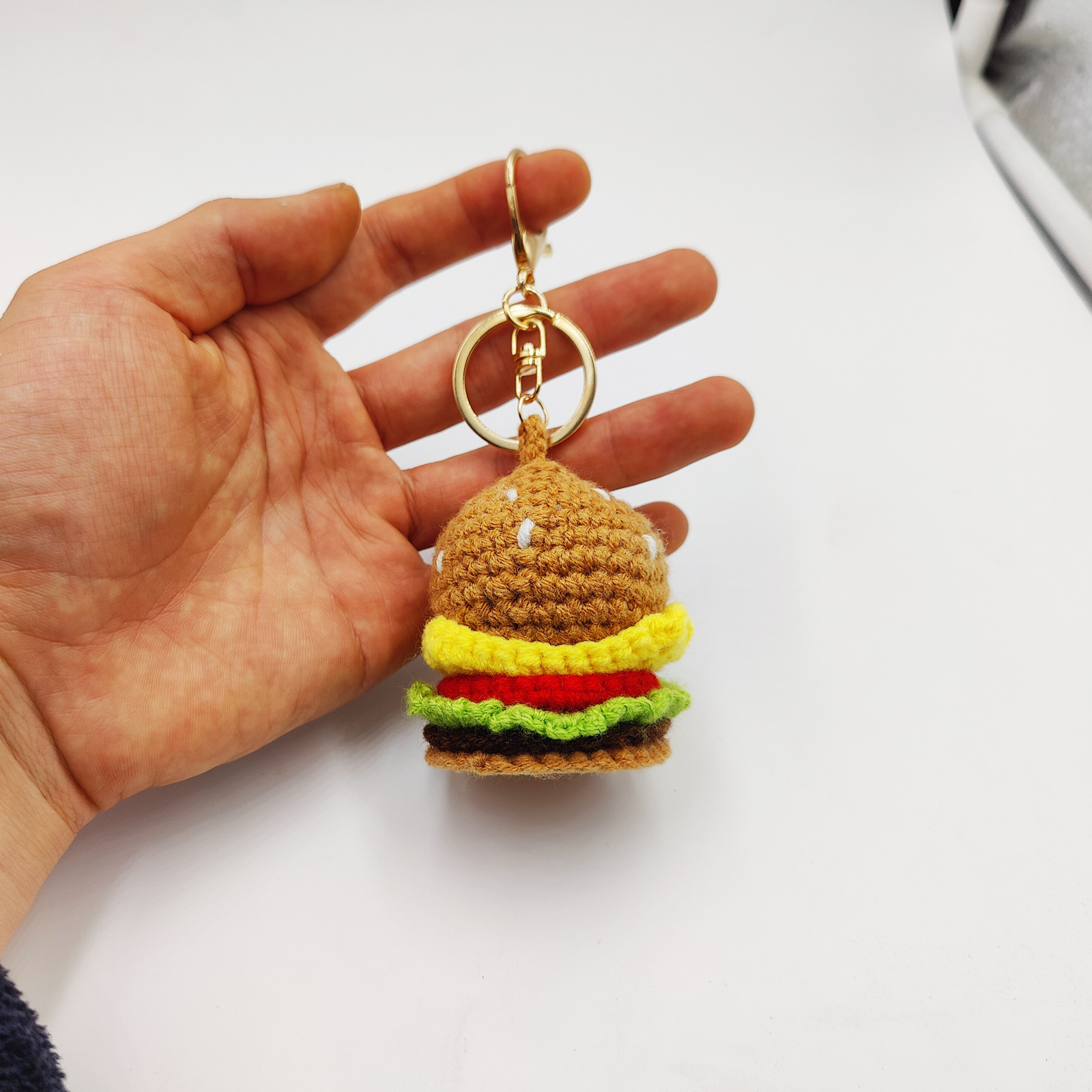 국경 간 니트 맥도날드 햄버거 교수형 보석 수제 선물 어린이 여자 친구 선물 키 체인스토어 가기