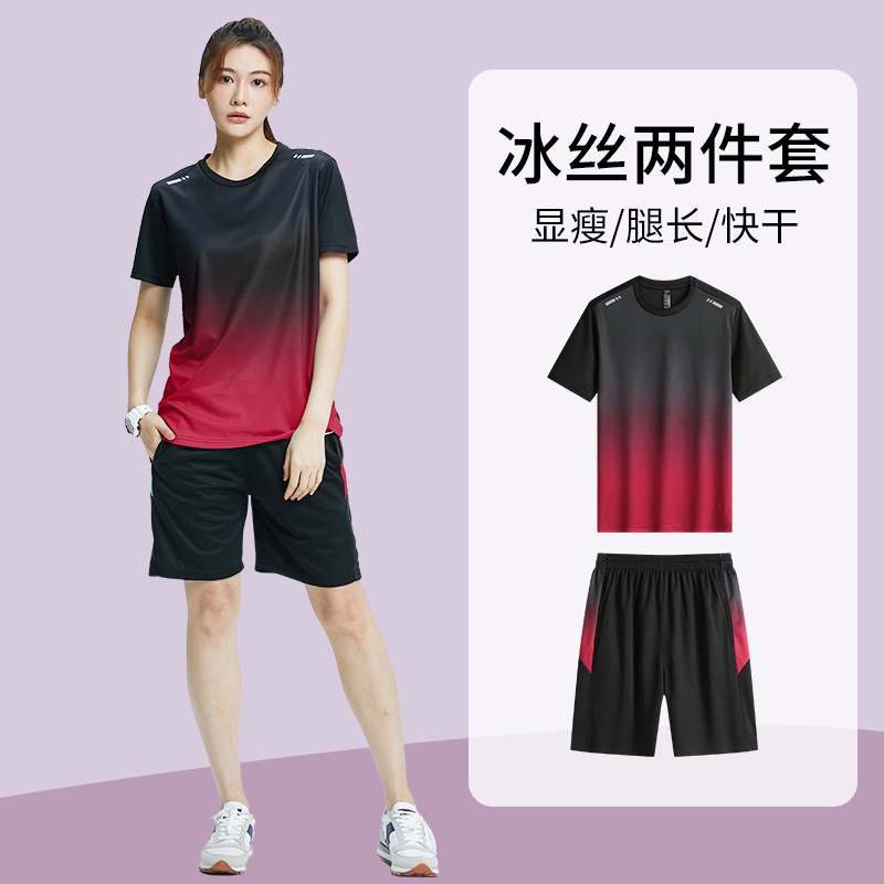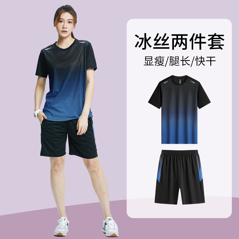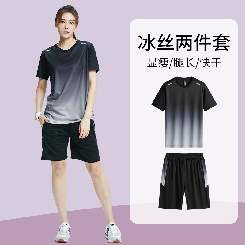 운동복 세트 여성의 2024 새로운 여름 빠른 건조 피트니스 옷 플러스 사이즈 달리기 장비 반팔 반바지 아이스 실크스토어 가기