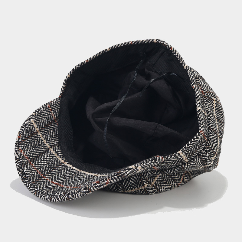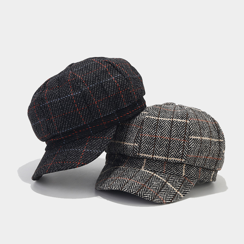 Yiyi 가을과 겨울 영국 레트로 클래식 격자 무늬 팔각형 모자 여성의 얼굴 작은 짧은 챙이 캐주얼 모자 남성 패션 신문스토어 가기