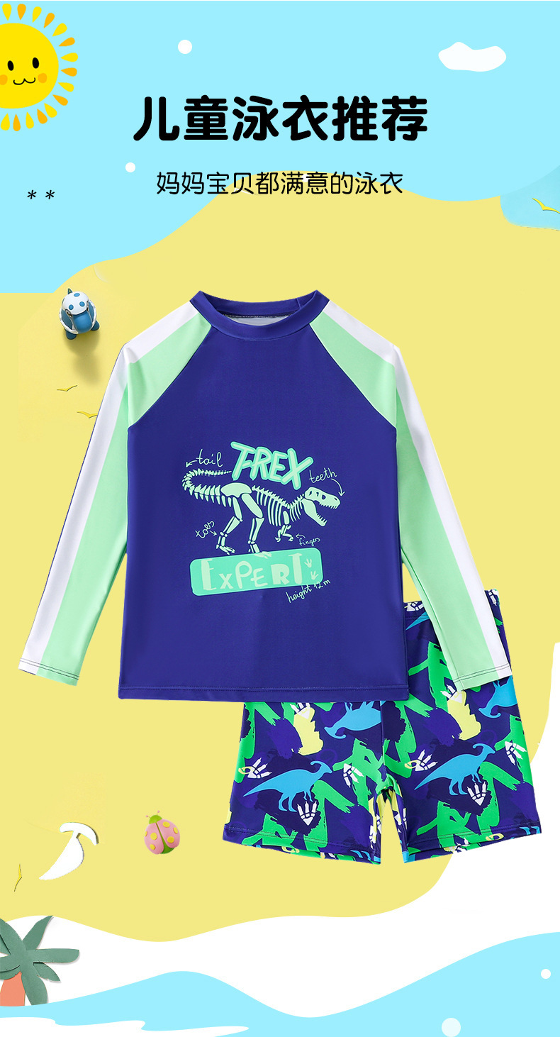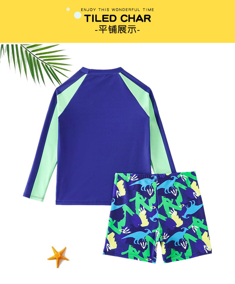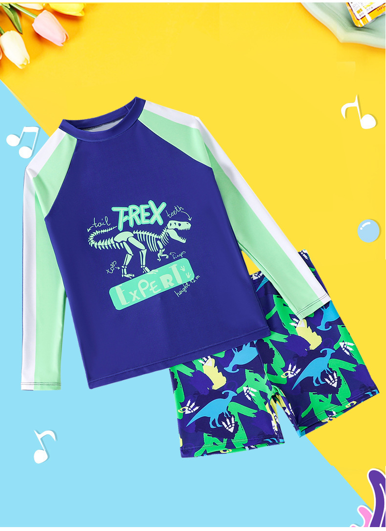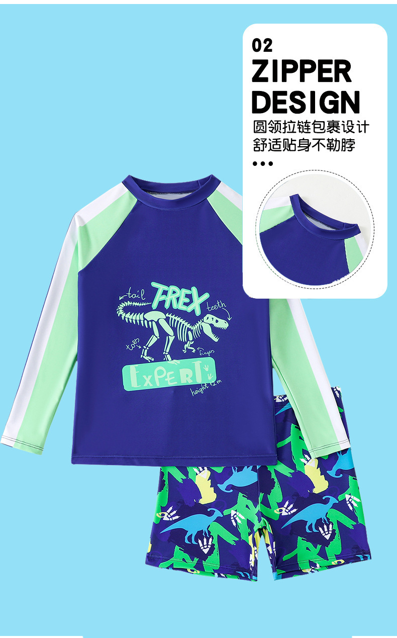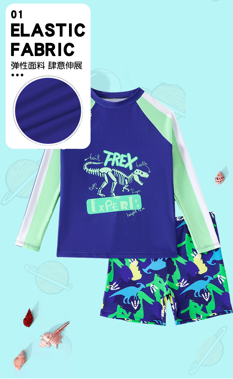 어린이 수영복 소년의 긴팔 수영복 2024 새로운 분할 투피스 공룡 인쇄 반바지 선 스크린 수영복