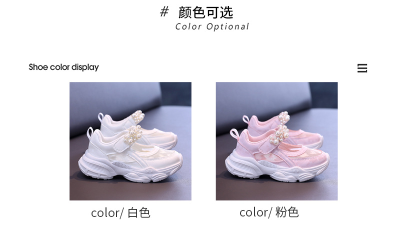 여자 솔리드 컬러 메쉬 중공 스포츠 신발 여름 새로운 어린이 중대형 어린이 진주 솔리드 컬러 아빠 신발스토어 가기