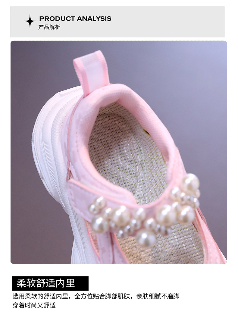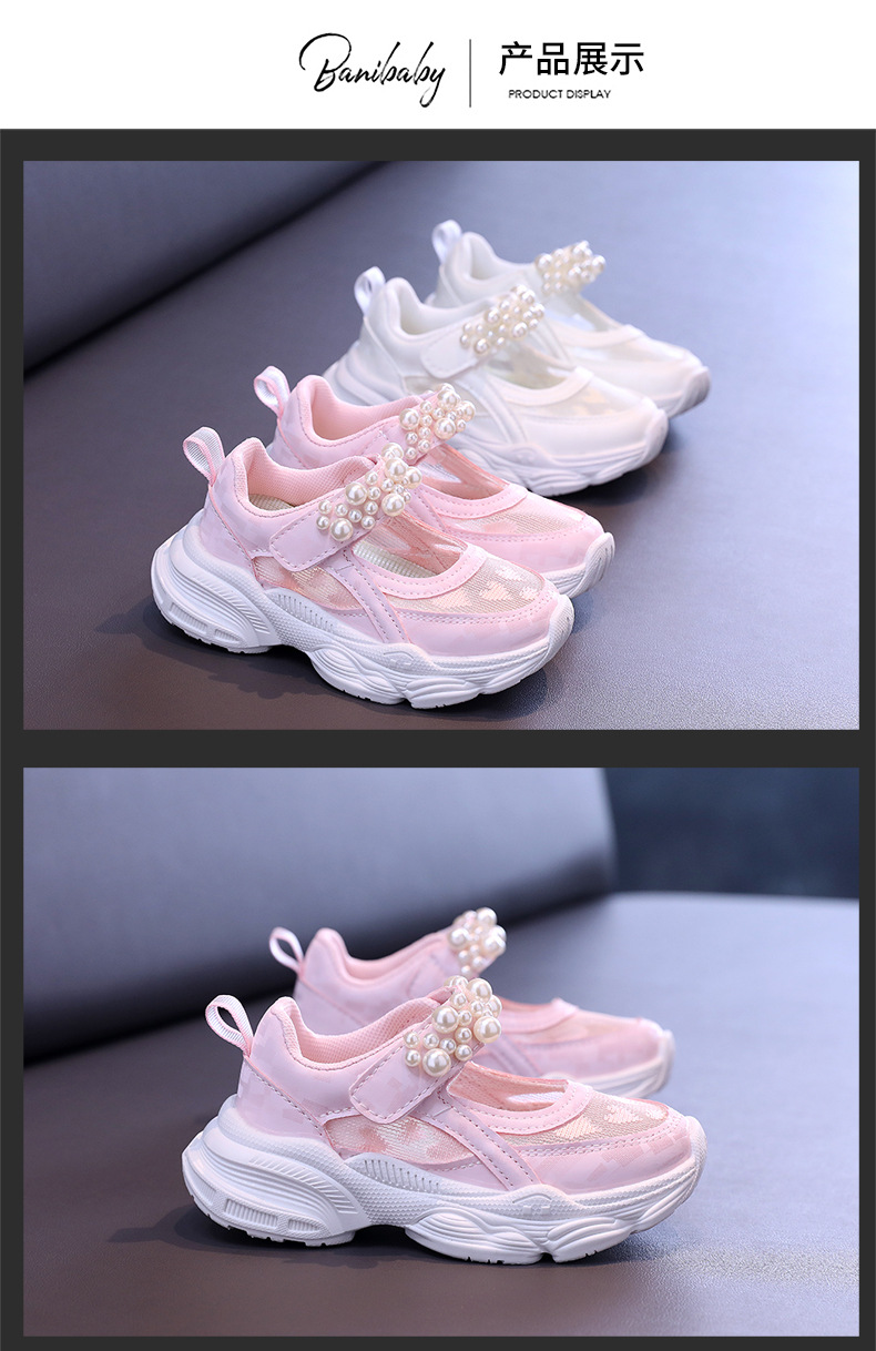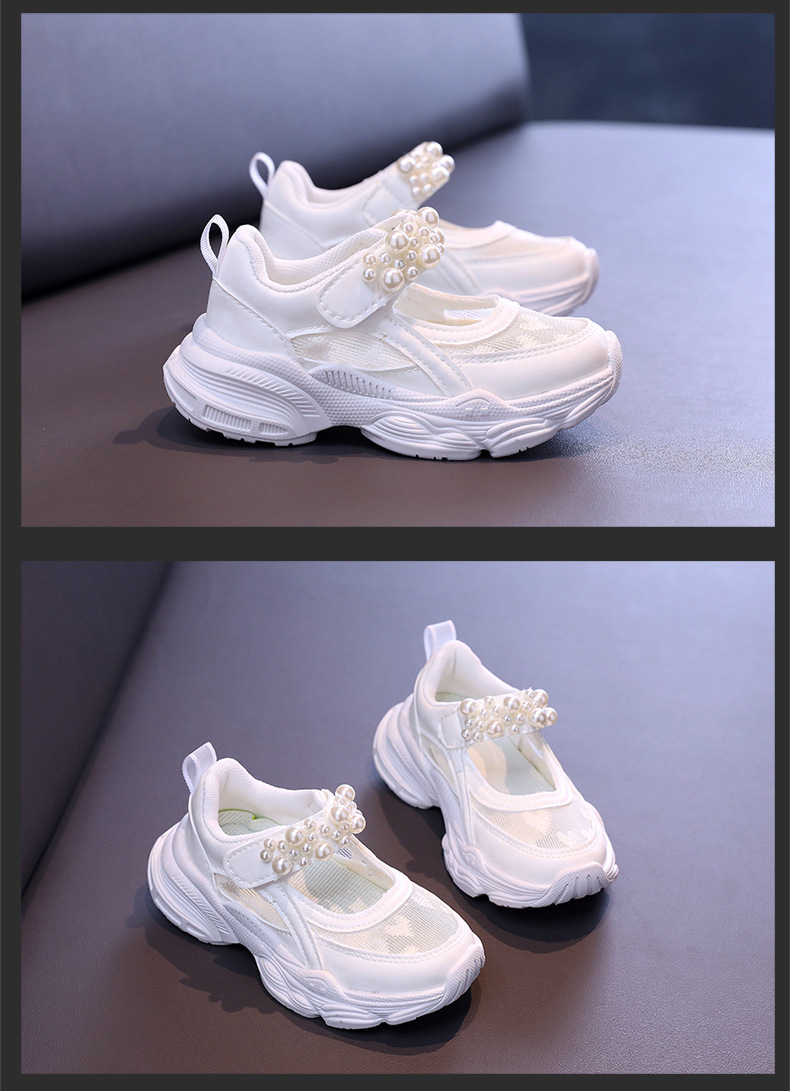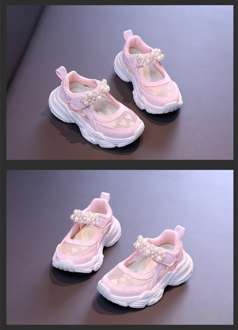여자 솔리드 컬러 메쉬 중공 스포츠 신발 여름 새로운 어린이 중대형 어린이 진주 솔리드 컬러 아빠 신발