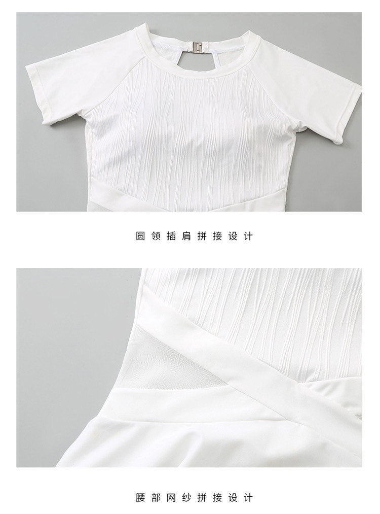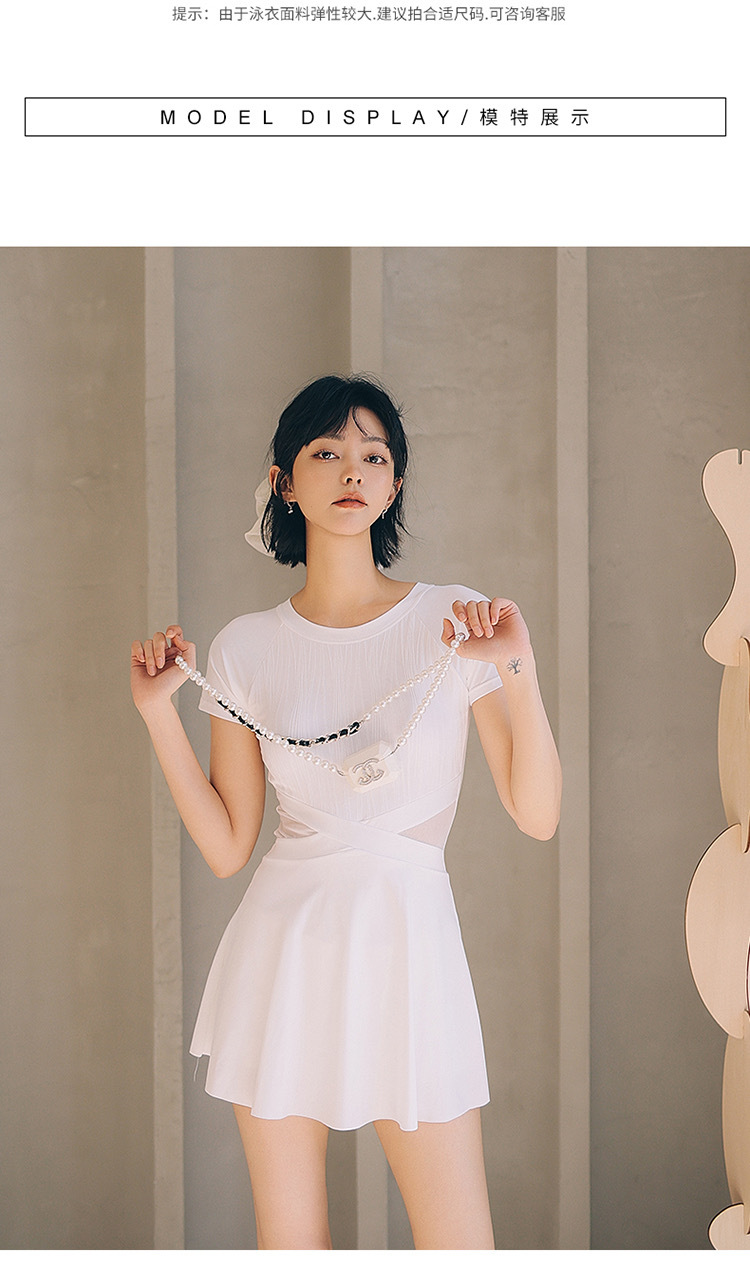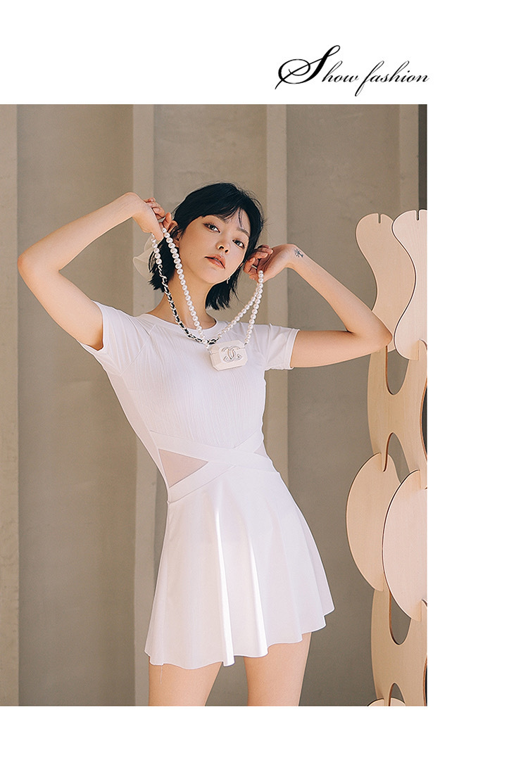 여성용 원피스 스커트 스타일의 단색 수영복 반소매 배꼽 커버 슬리밍 가슴 모양의 온천 한국 요정 팬 인 수영스토어 가기