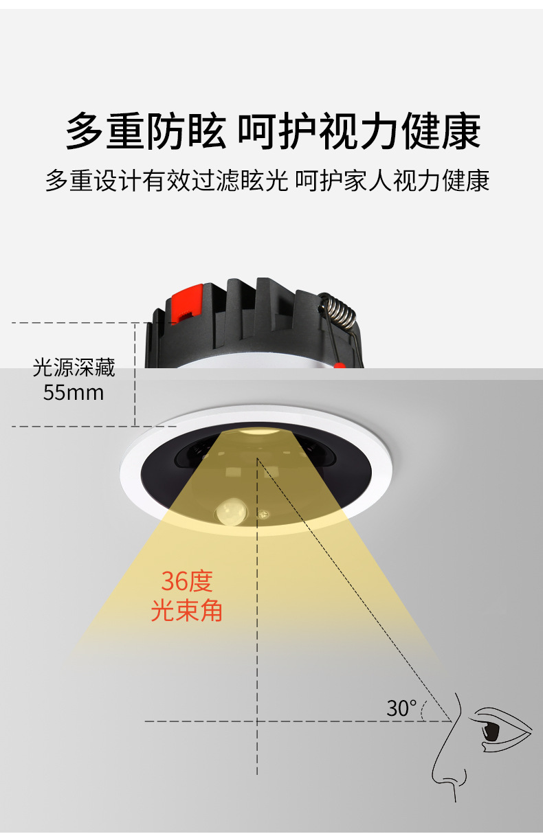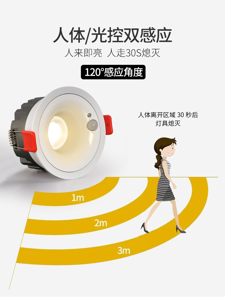 인체 유도 스포트 라이트 임베디드 스포트라이트 은폐 유도 스포트라이트 입구 도어 통로 발코니 입구 조명 감지 스포트라이트스토어 가기