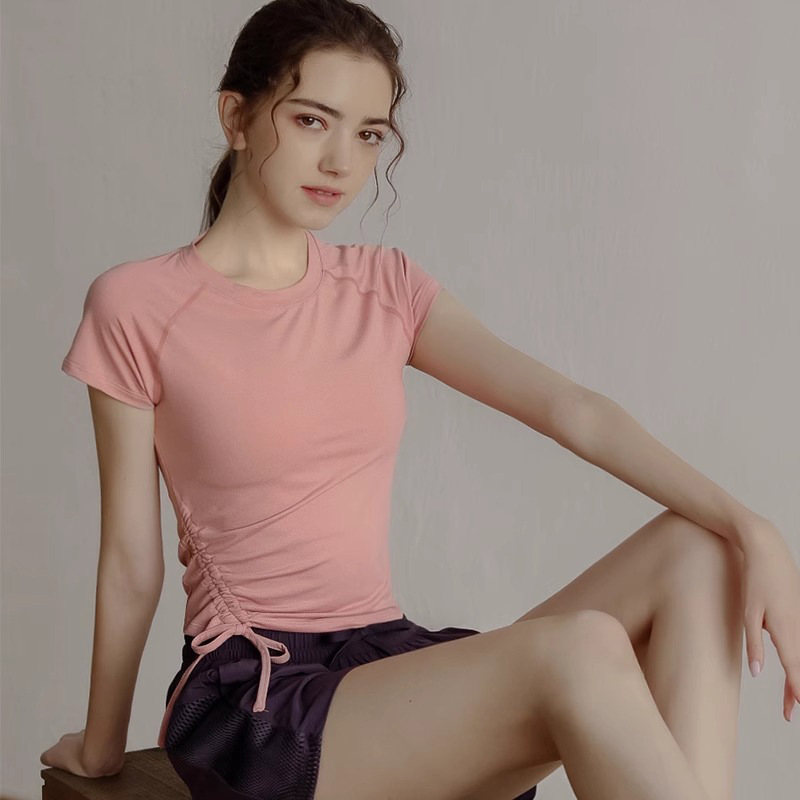 요가 의류 최고 여성 여름 얇은 전문 달리기 훈련 필라테스 반팔 빠른 건조 티셔츠 스포츠 피트니스 의류스토어 가기