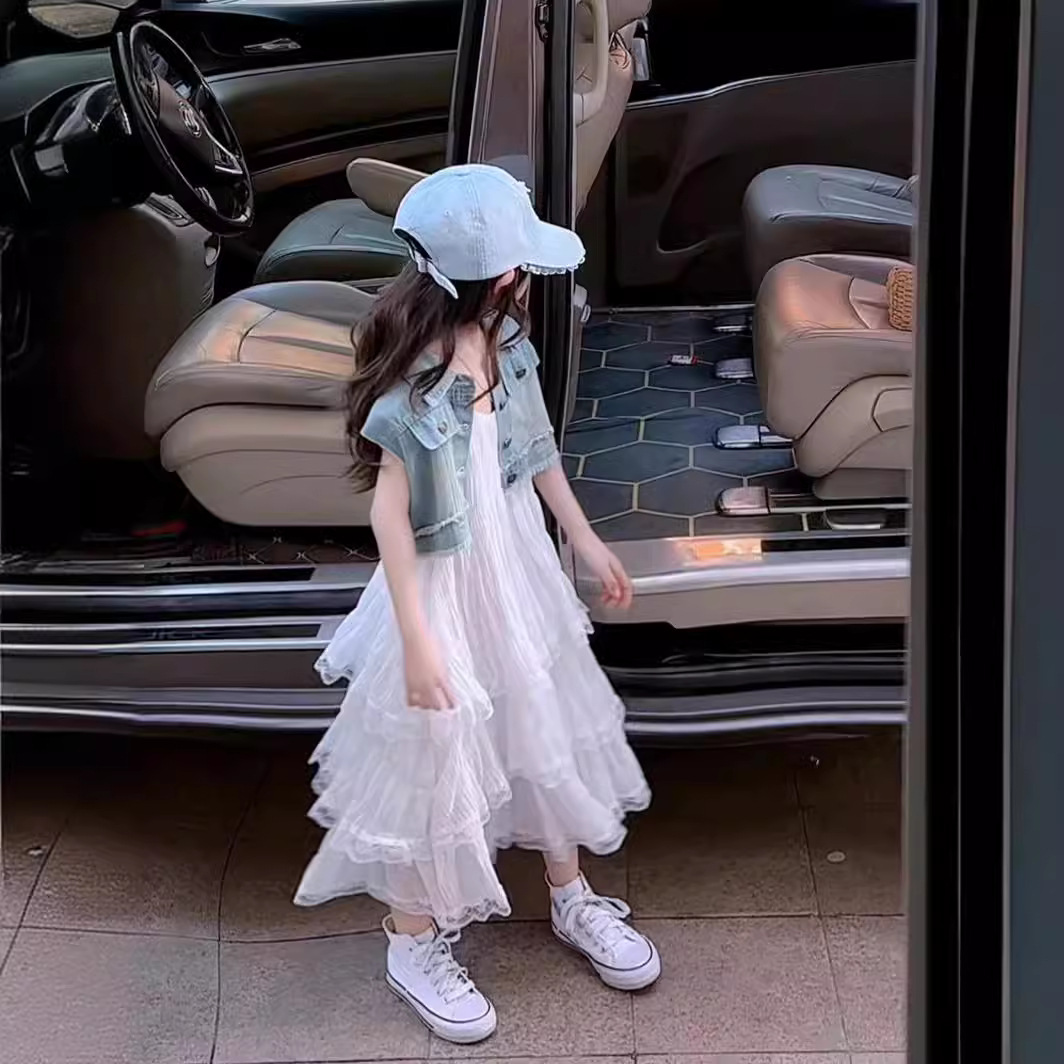 소녀 원피스 여름 하이 엔드 센스 2024 새로운 어린이 여름 원피스 서양식 원피스 소녀 화이트 프린세스 원피스스토어 가기
