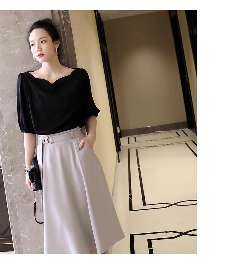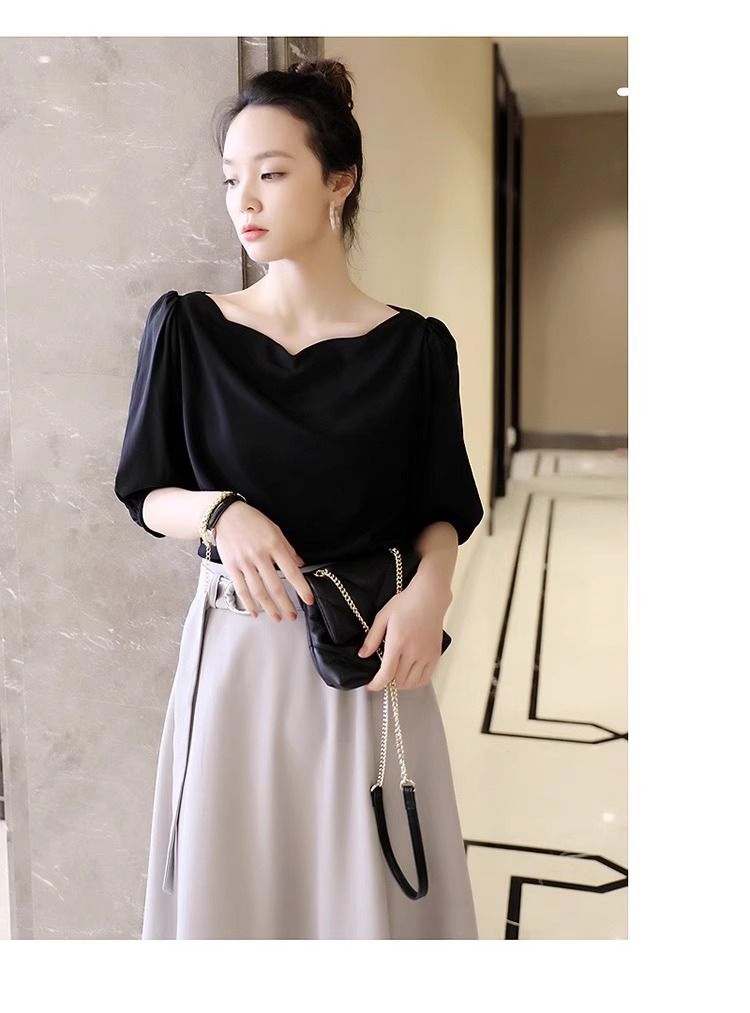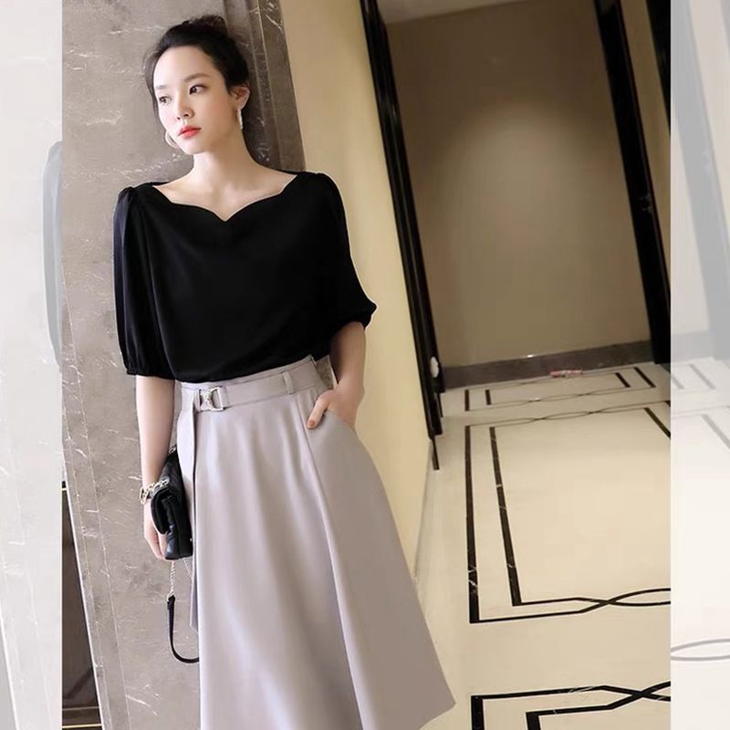 여름 새로운 프랑스 스타일 하이 엔드 쉬폰 반팔 셔츠 여성 의류 샤넬 스타일 V 넥 우아한 느슨한 슬리밍 탑