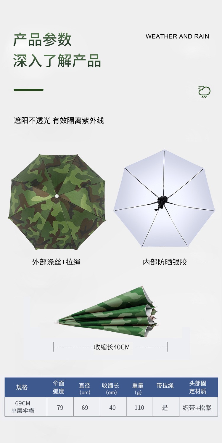야외 우산 핸즈리스 우산 맑고 비 이중 사용 차 따기 모자 우산 야외 낚시 UV 보호 우산 햇빛