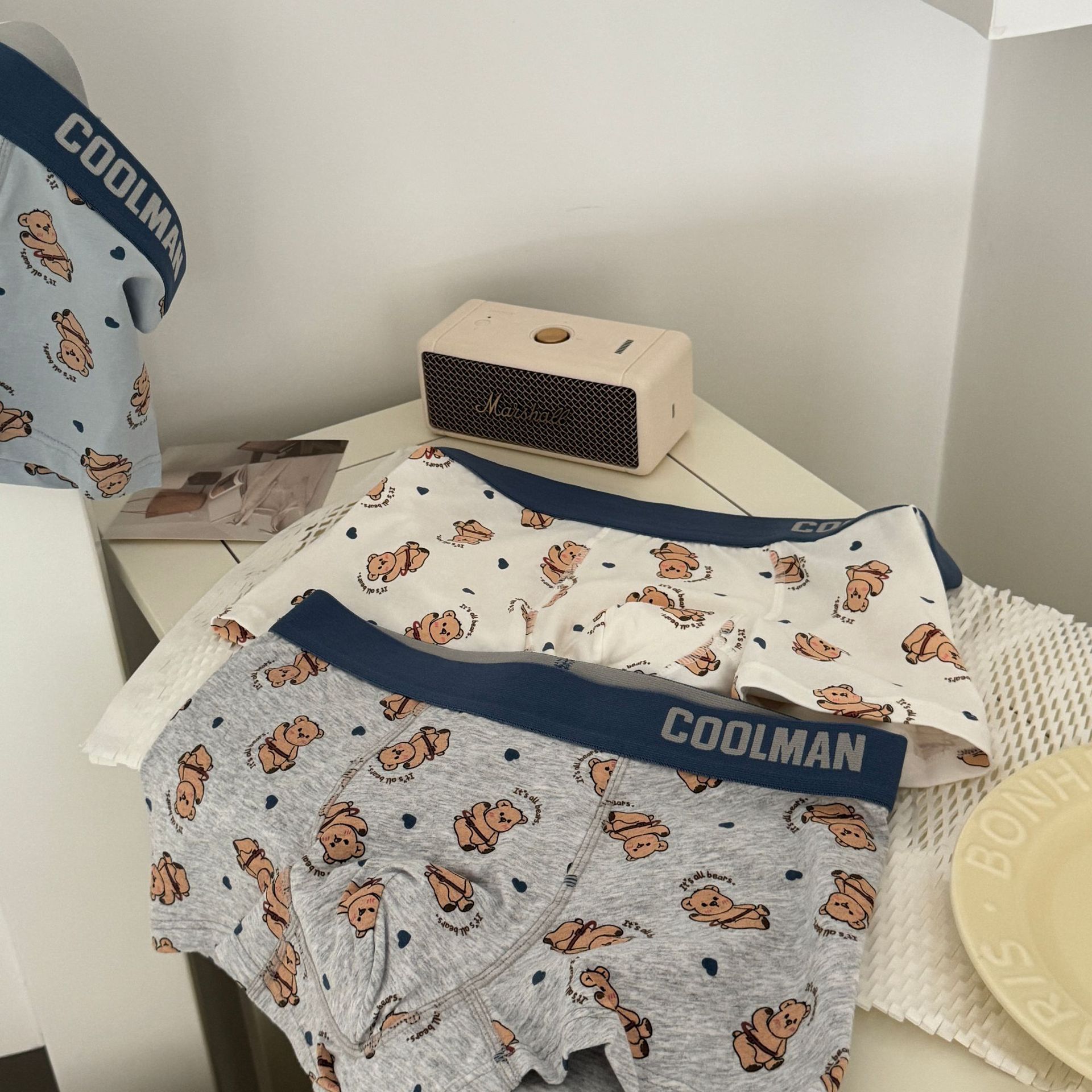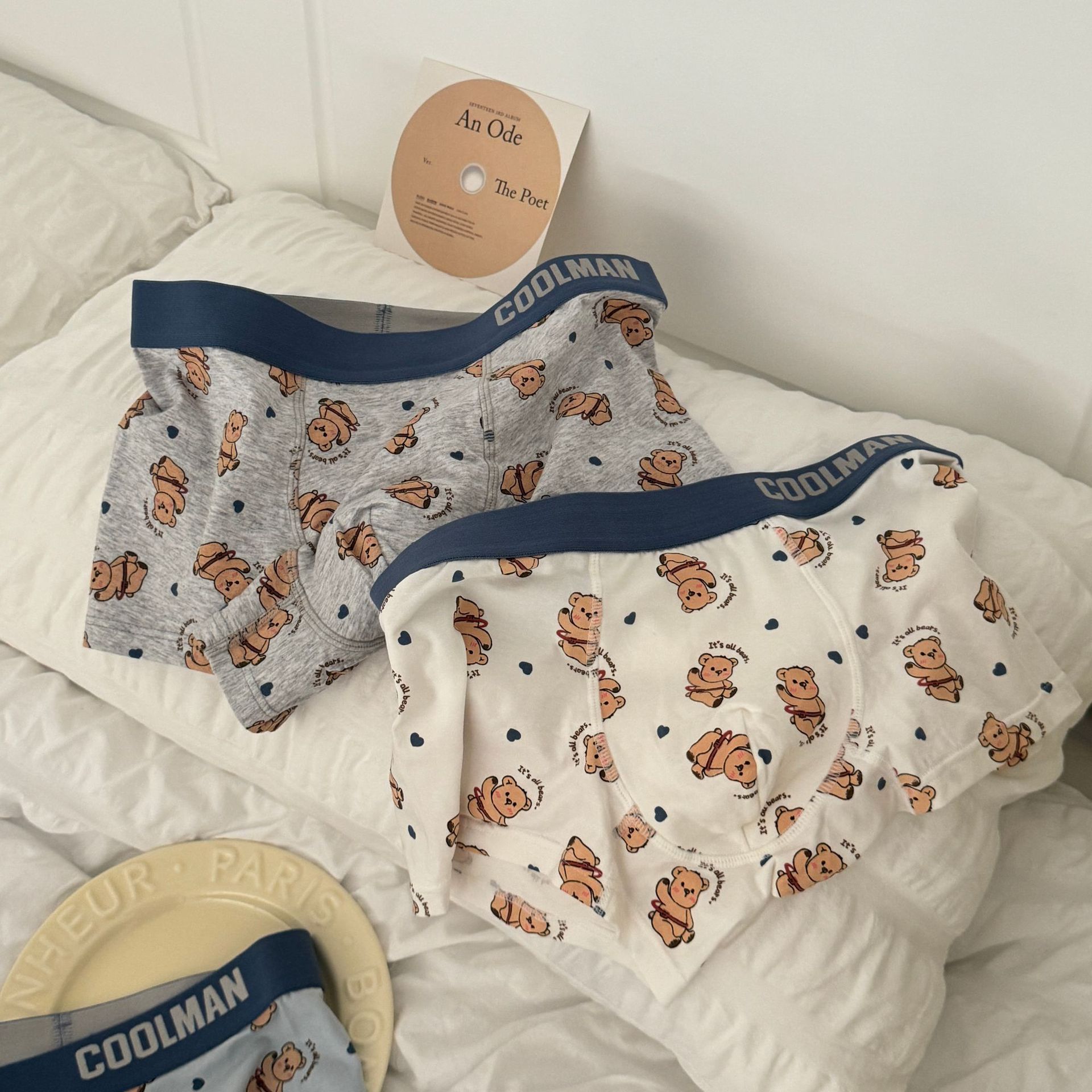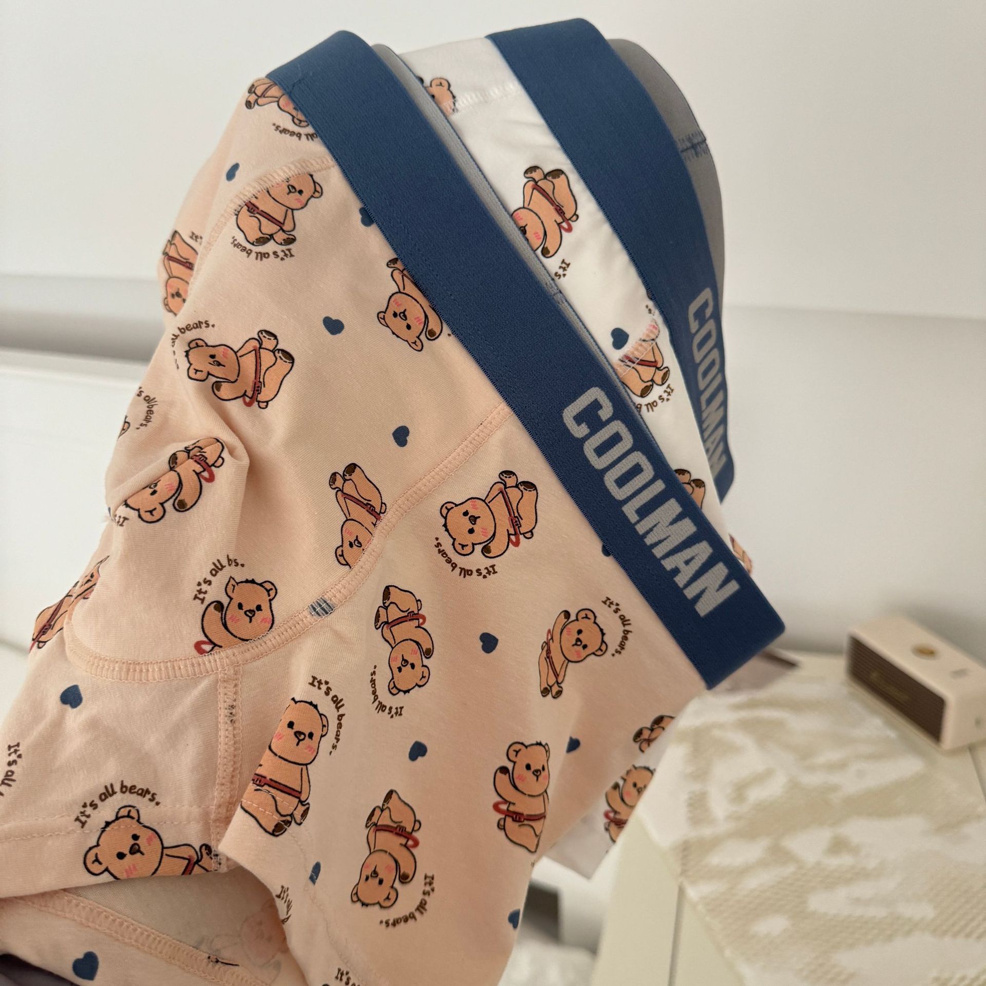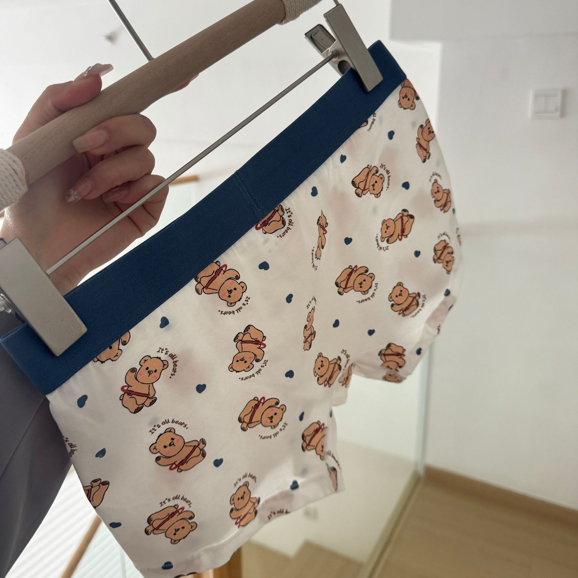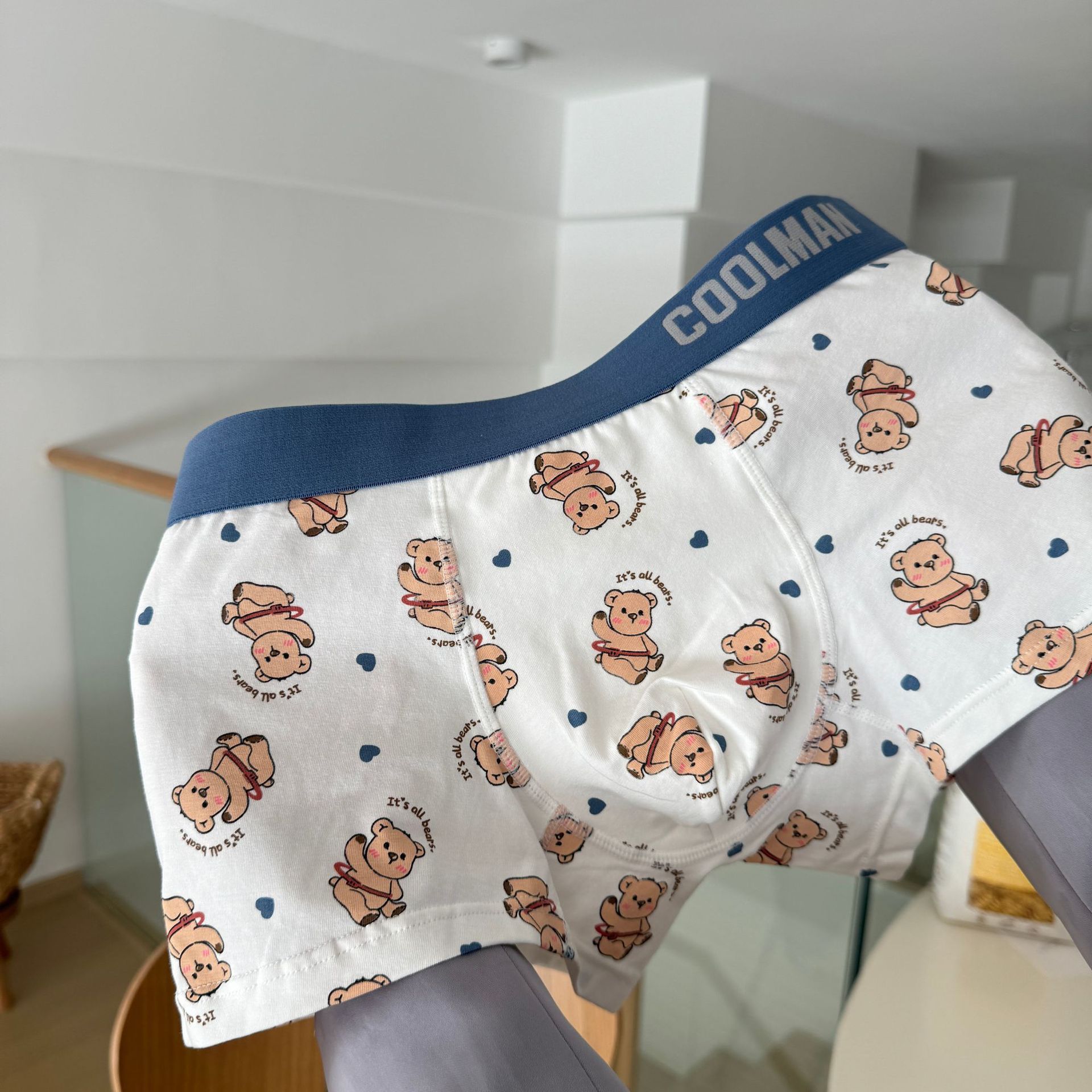 행복 한 귀여운 곰 남자의 속옷 느슨한 편안한 통기성 순수 코튼 복서 만화 남성 속옷스토어 가기
