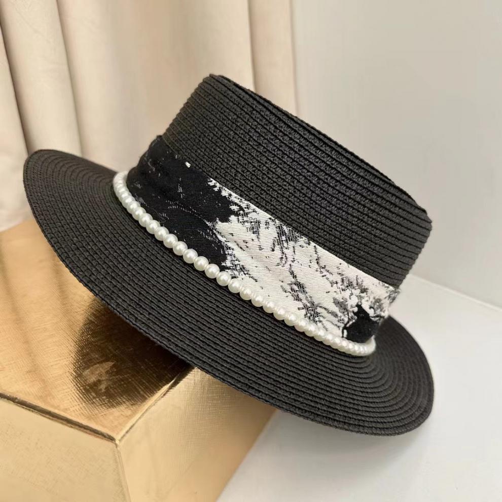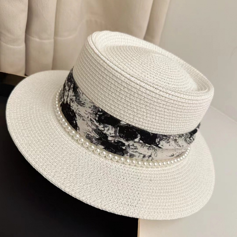 이순이 진주 화이트 플랫 탑 모자 여성의 여름 야외 여행 선 스크린 태양 모자 새로운 스타일 탑 모자 홀리데이 비치 모자스토어 가기