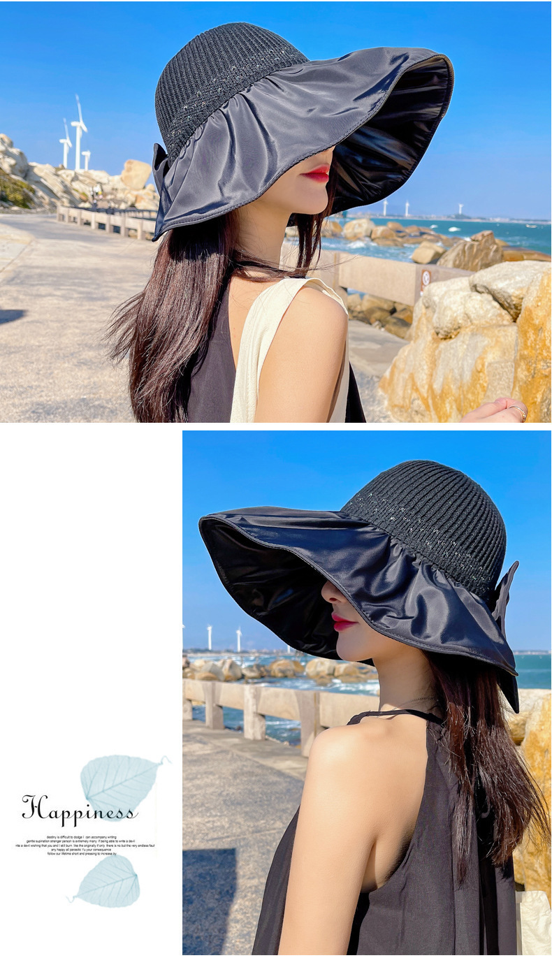 Yi Yi 일본 검은 접착제 Anti-UV 모자 여자 올 매치 메쉬 대형 Eave 태양 보호 태양 모자 접이식 휴대용스토어 가기