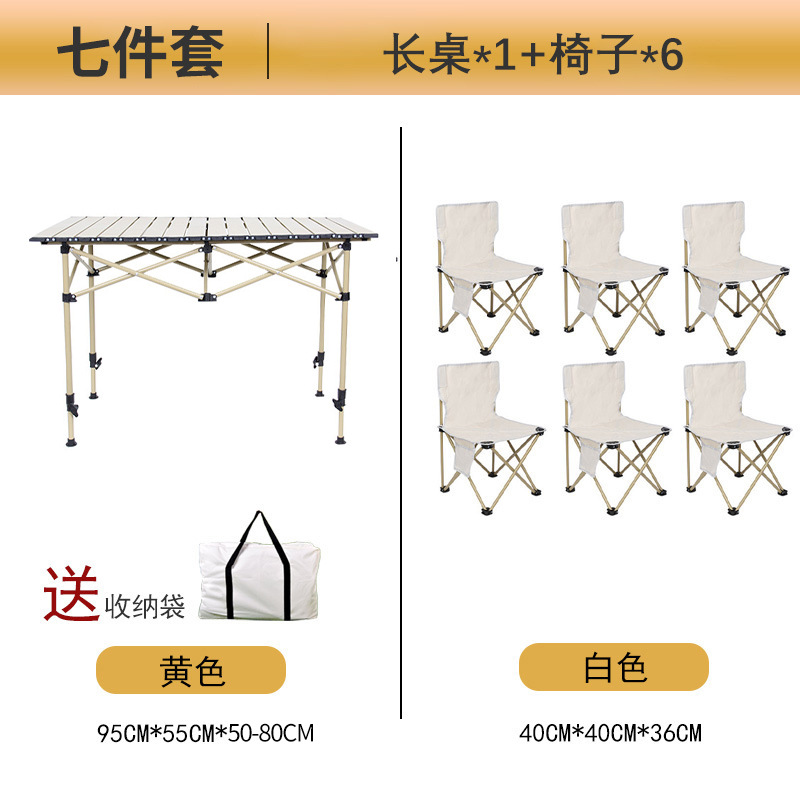 • 패키지 F 7 피스 세트 (95cm 노란색 리프팅 테이블 6 흰색 접이식 의자 패키지)