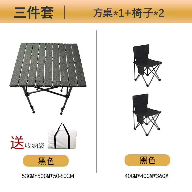 • 패키지 3 피스 세트 (50cm 블랙 리프팅 스퀘어 테이블 2 블랙 40cm 접이식 의자 패키지)