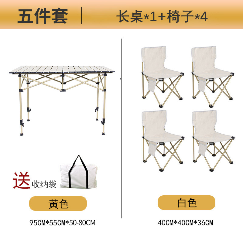 • 패키지 E 5 피스 세트 (95cm 노란색 리프팅 테이블 4 흰색 40cm 접이식 의자 패키지)