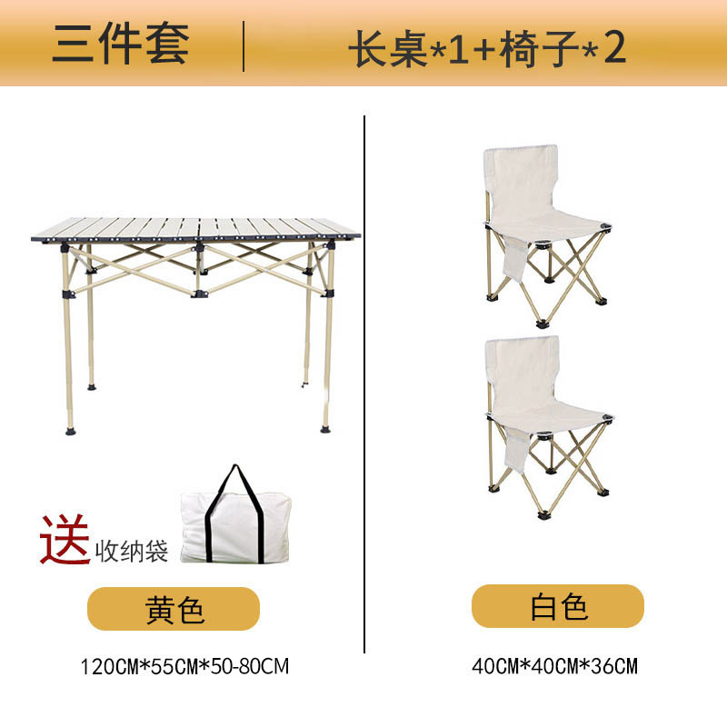 • 패키지 D 3 피스 세트 (95cm 노란색 리프팅 테이블 2 흰색 40cm 접이식 의자 패키지)