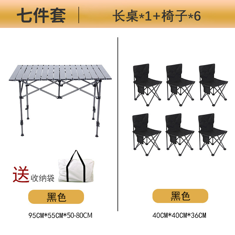 • 패키지 F 7 피스 세트 (95cm 블랙 리프팅 긴 테이블 6 블랙 접이식 의자 패키지)