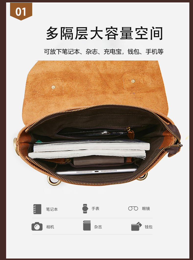 엄선된 크레이지 호스 가죽 메신저 백, 남성용 다기능 여성용 소형 백팩, 고급 크로스백, 리얼 핸드헬드 가죽 오토바이