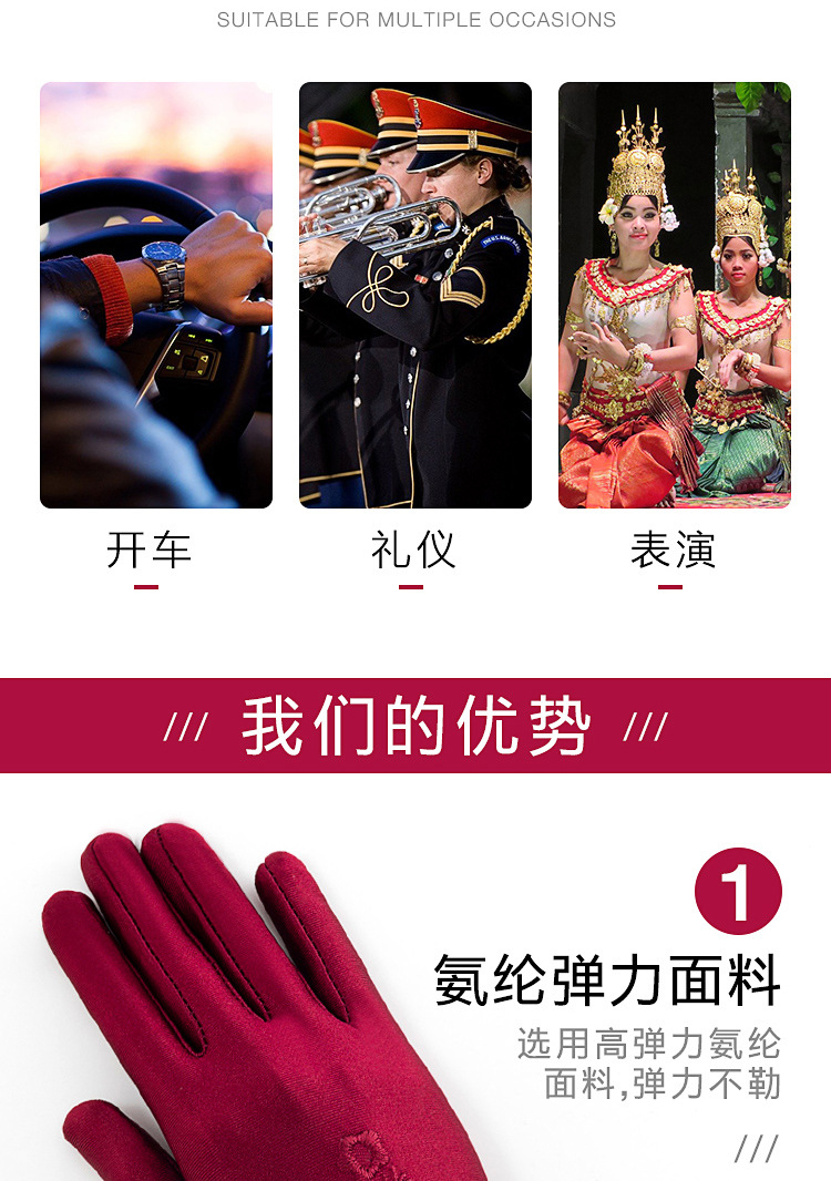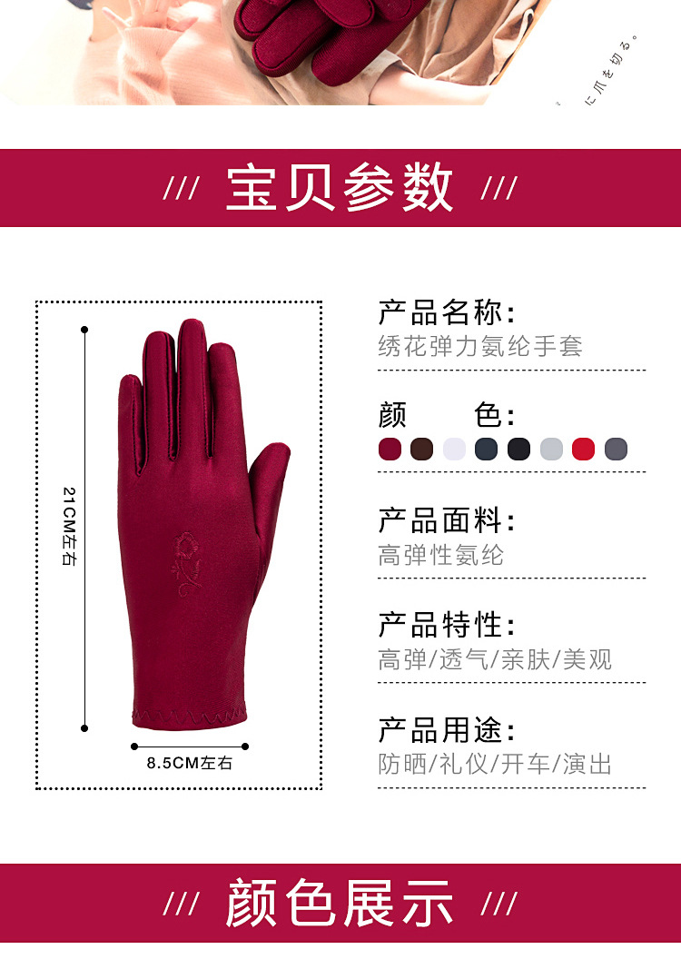 보석 장갑 카운터 디스플레이 장갑 흑백 에티켓 댄스 얇은 운전 태양 보호 장갑 여름 맞춤형 로고
