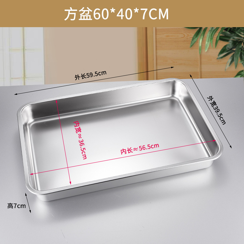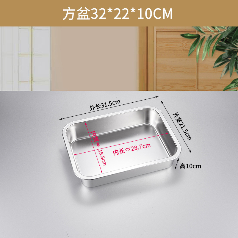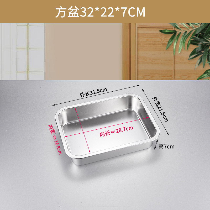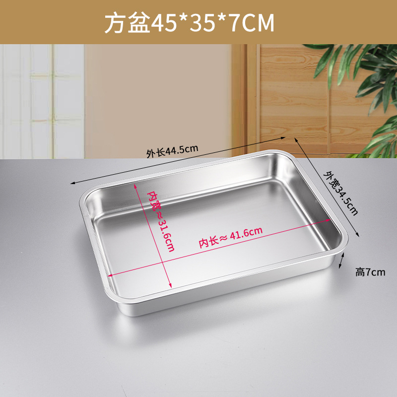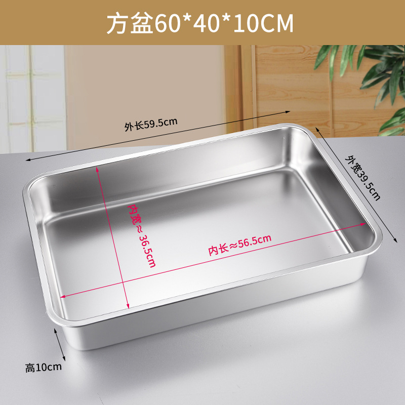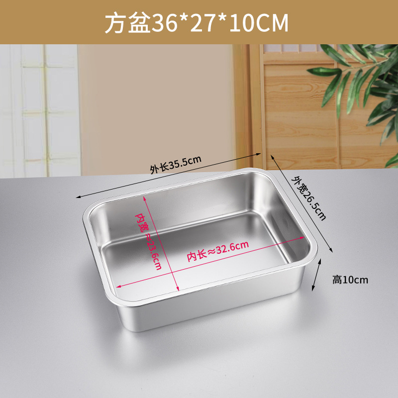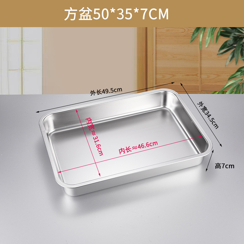 304 스테인레스 스틸 스퀘어 분지 직사각형 스퀘어 플레이트 뷔페 부분 분지 찐 쌀 플레이트 트레이 패스트 푸드 분지 고양이 쓰레기 분지