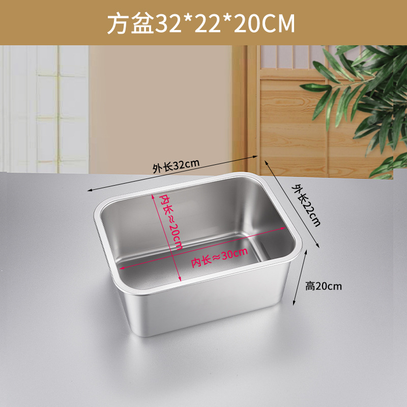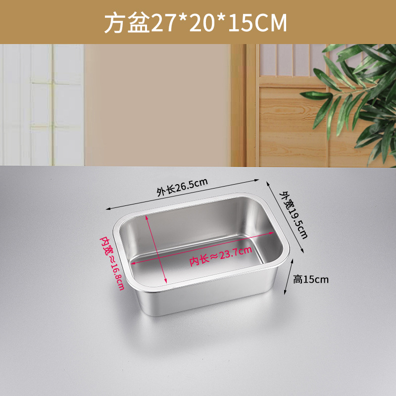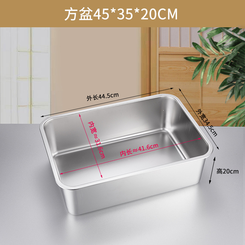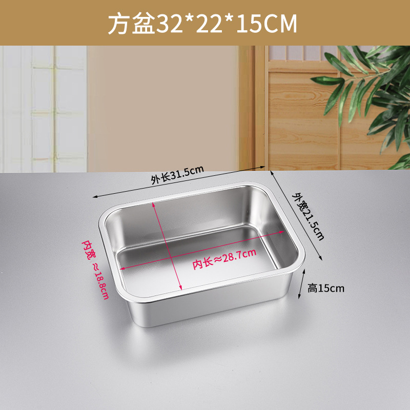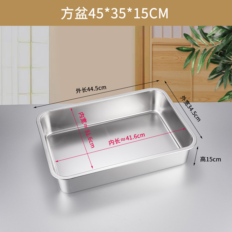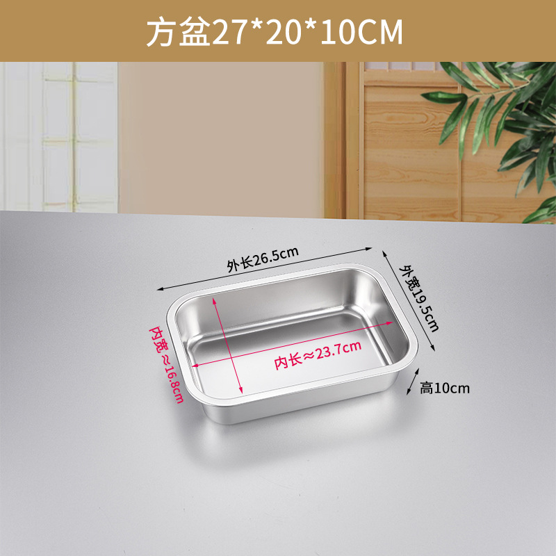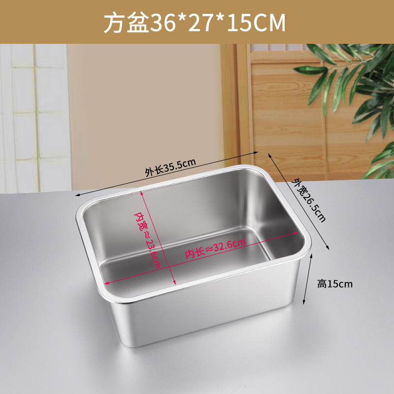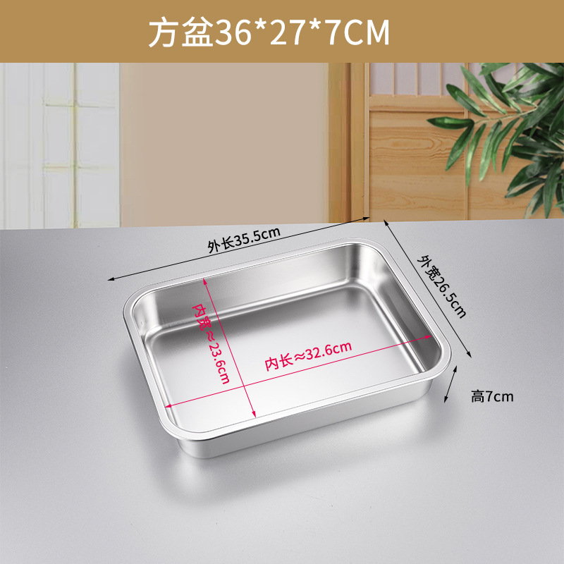 304 스테인레스 스틸 스퀘어 분지 직사각형 스퀘어 플레이트 뷔페 부분 분지 찐 쌀 플레이트 트레이 패스트 푸드 분지 고양이 쓰레기 분지