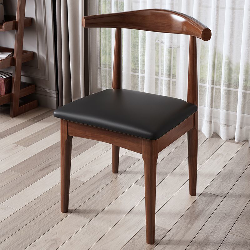 • 호른 의자 호두 색상 (단단한 나무 프레임 검은 가죽 쿠션)