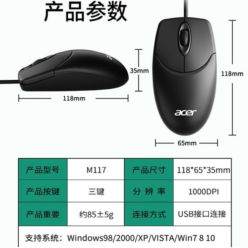 에이서 M117 사무실 usb 유선 마우스 데스크톱 노트북 올인원 비즈니스 사무실 도매에 적합