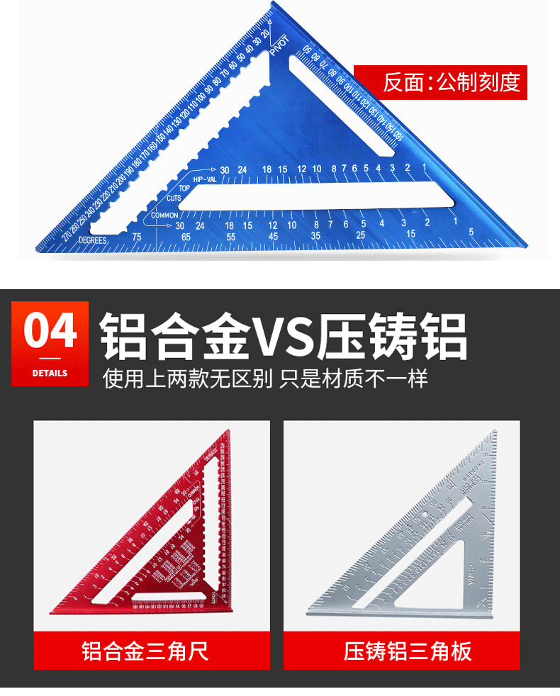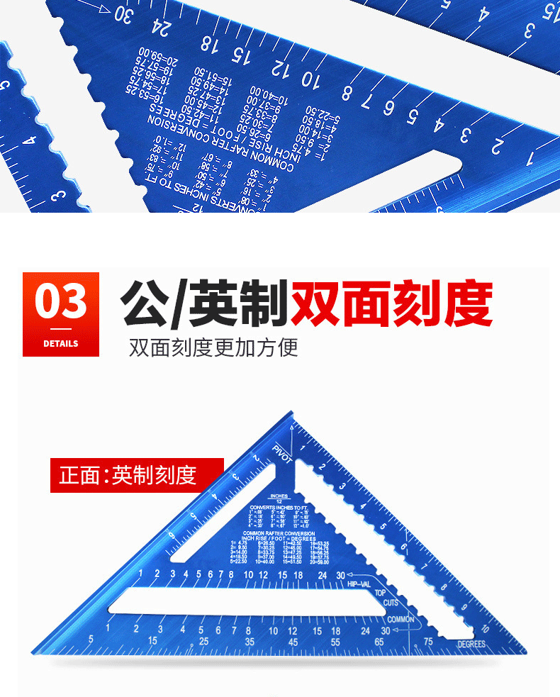국경 7 인치 미터 인치 알루미늄 프로파일 블랙 산화 삼각형 90 도 45 도 삼각형 통치자스토어 가기