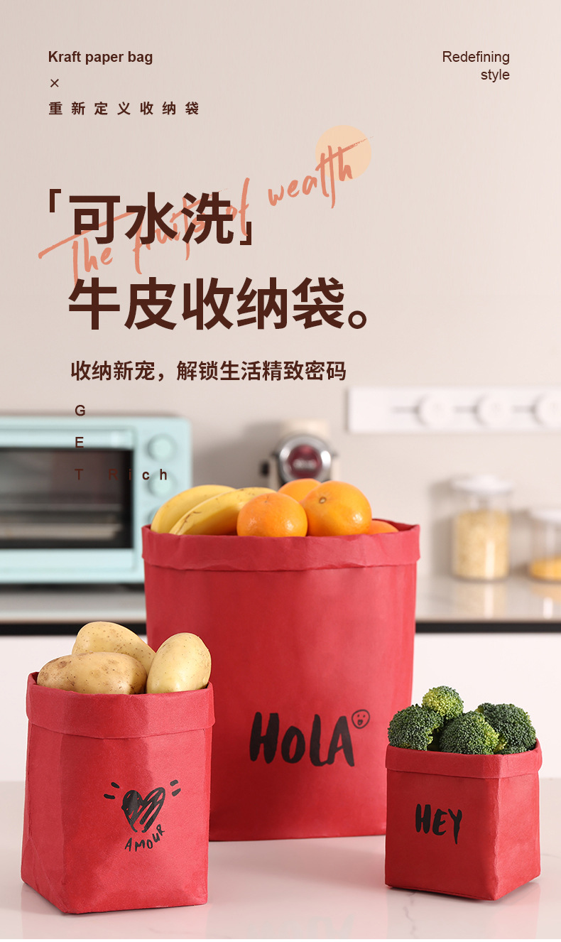 인스 스타일 크라프트 종이 보관 가방 주방 냉장고용 세탁 가능 두꺼운 사각 바닥 종이 가방 화분 장식 걸이 가방 인스 스타일