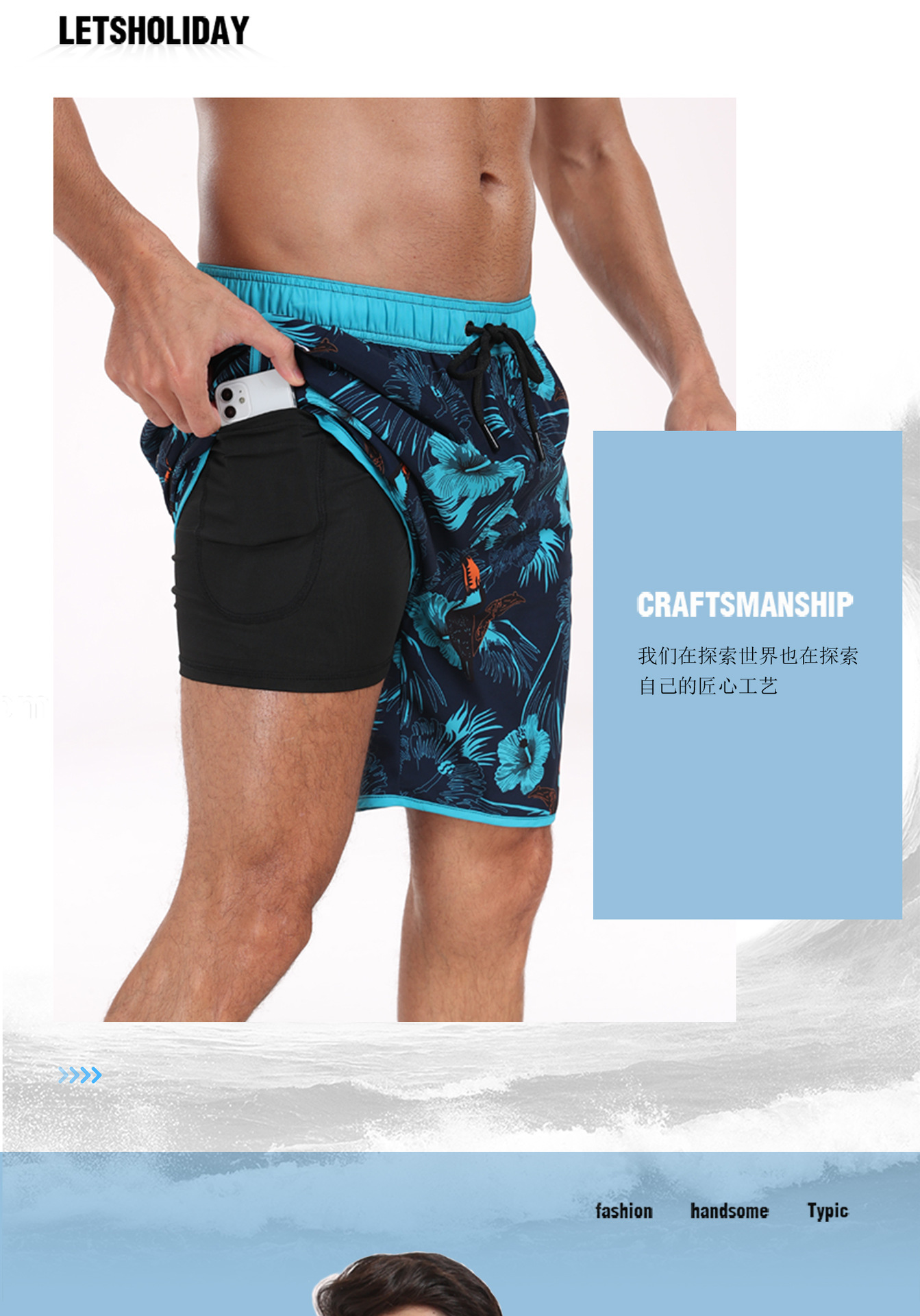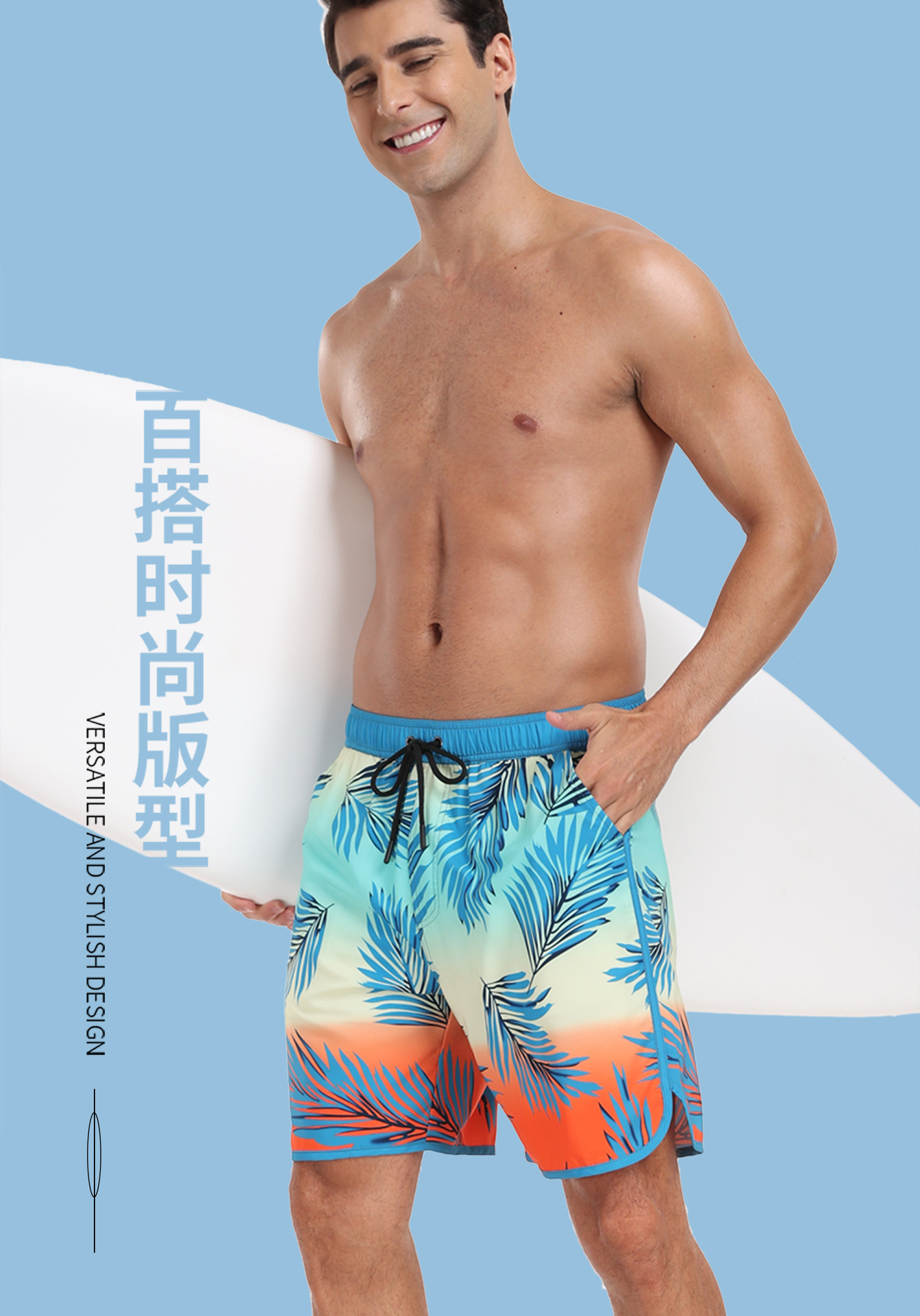 국경 간 남성 반바지 남자의 빠른 건조 수영 트렁크 패션 느슨한 해변 바지 멀티 포켓 인쇄 디자인 해변 반바지