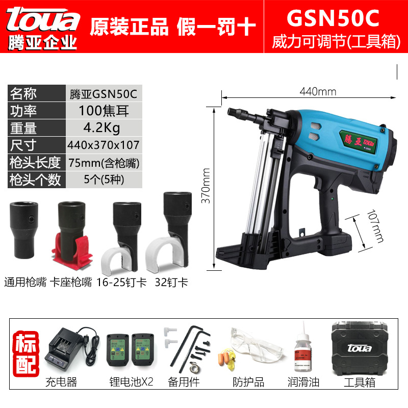 Tengya/TOUA GSN50C/C-E 수력 및 전기 설치 가스 네일 건 목공 도어 및 창 수력 및 전기 특수 가스 네일 건