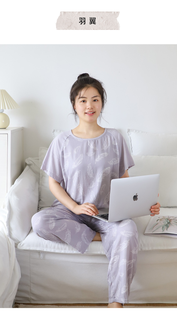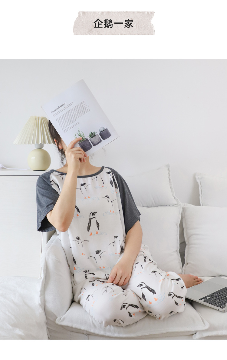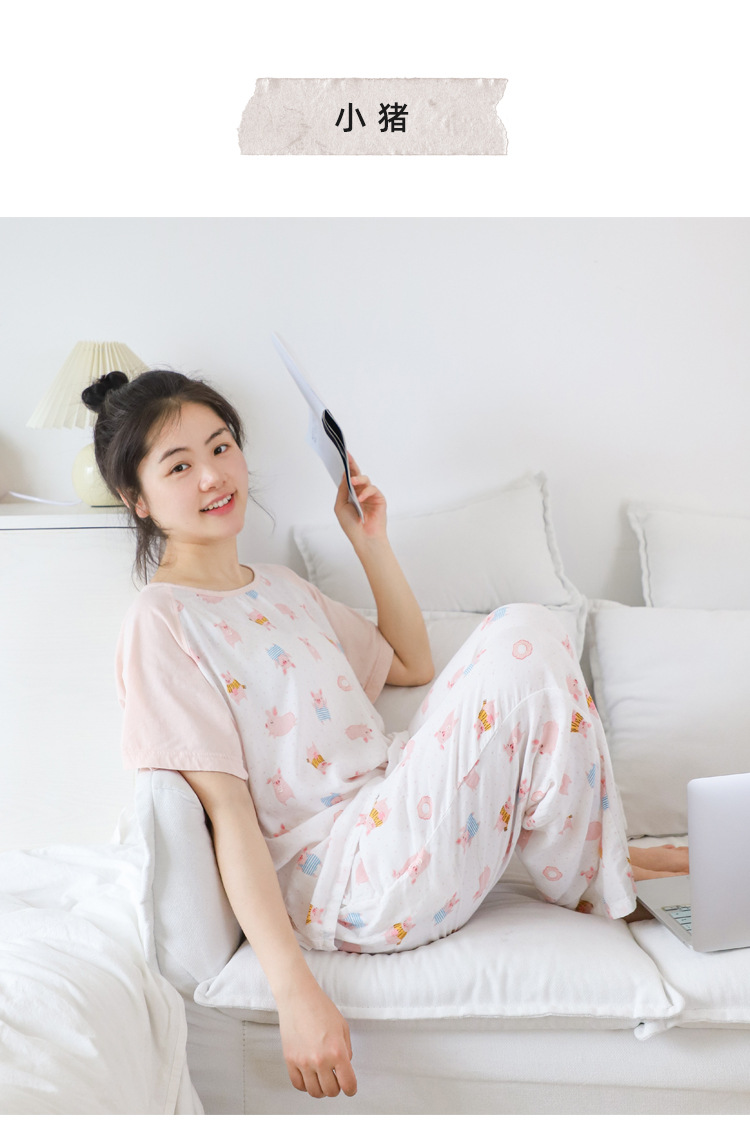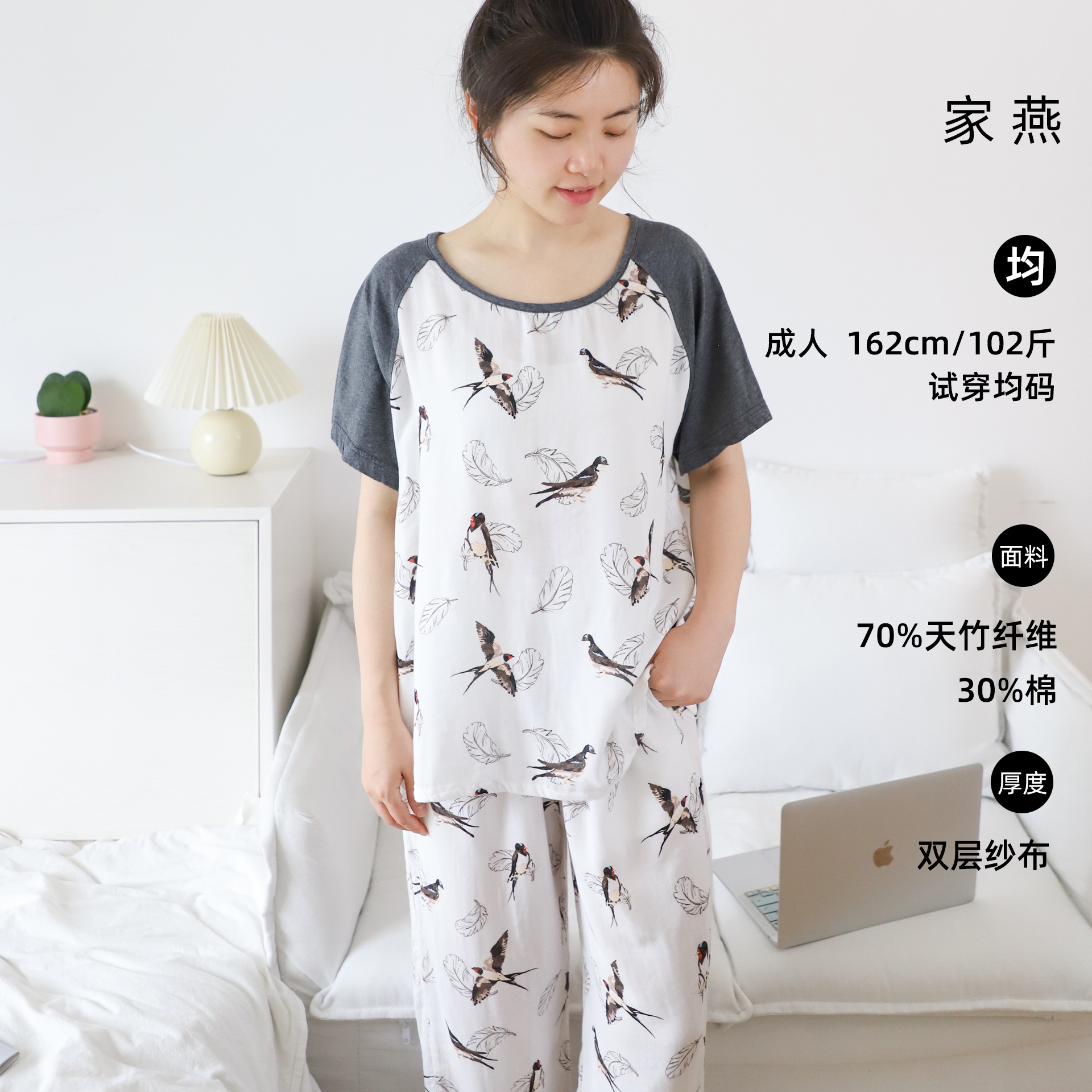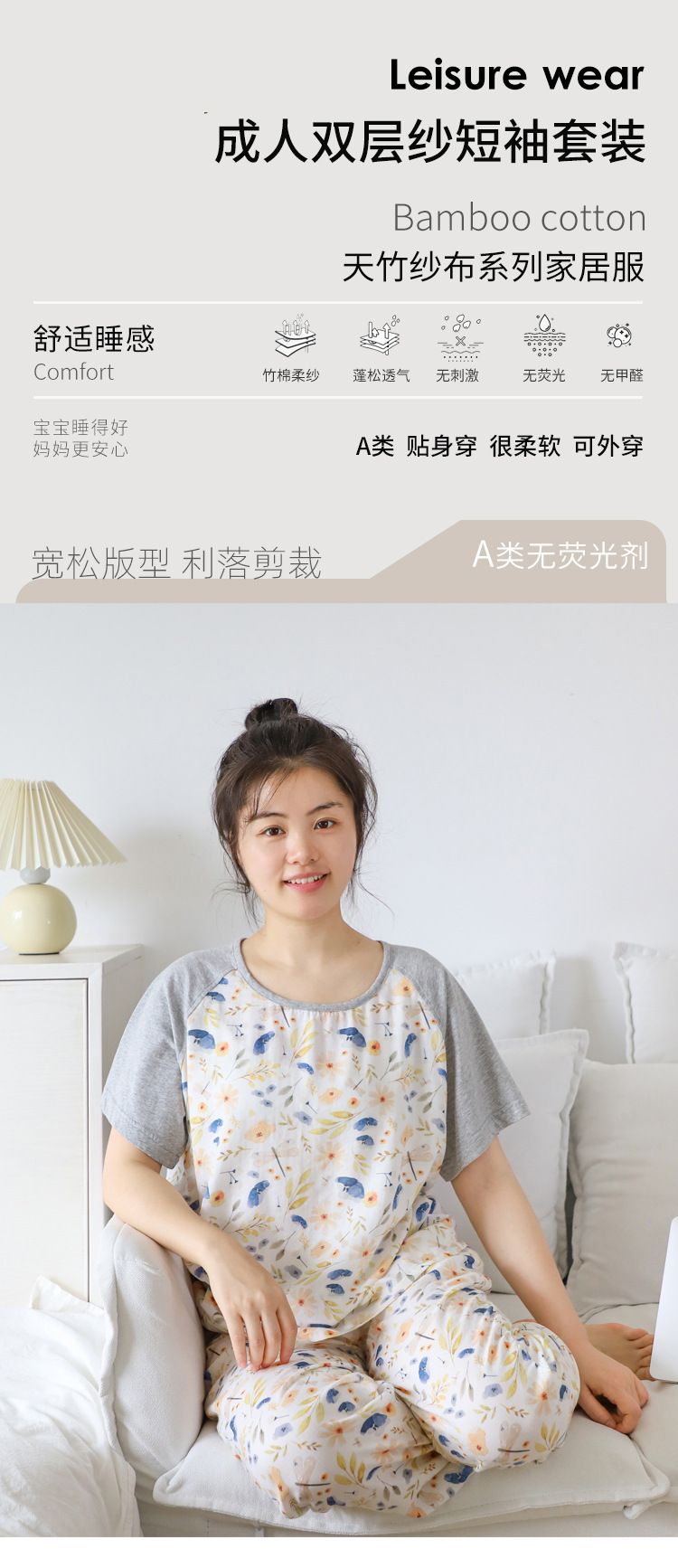 여름용 대나무 면 거즈 홈웨어 여성 세트 시원한 반팔 얇은 라운드넥 부모 자녀 홈웨어 대나무 섬유스토어 가기