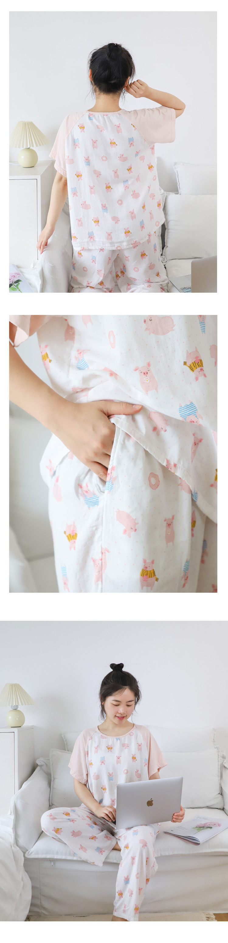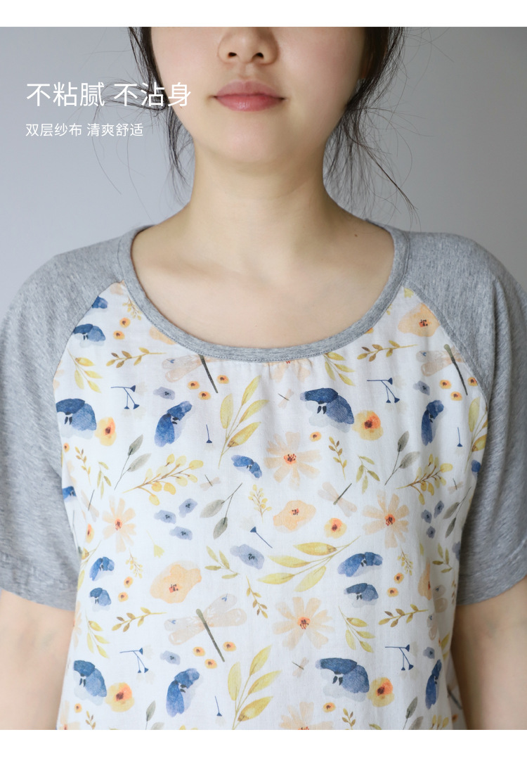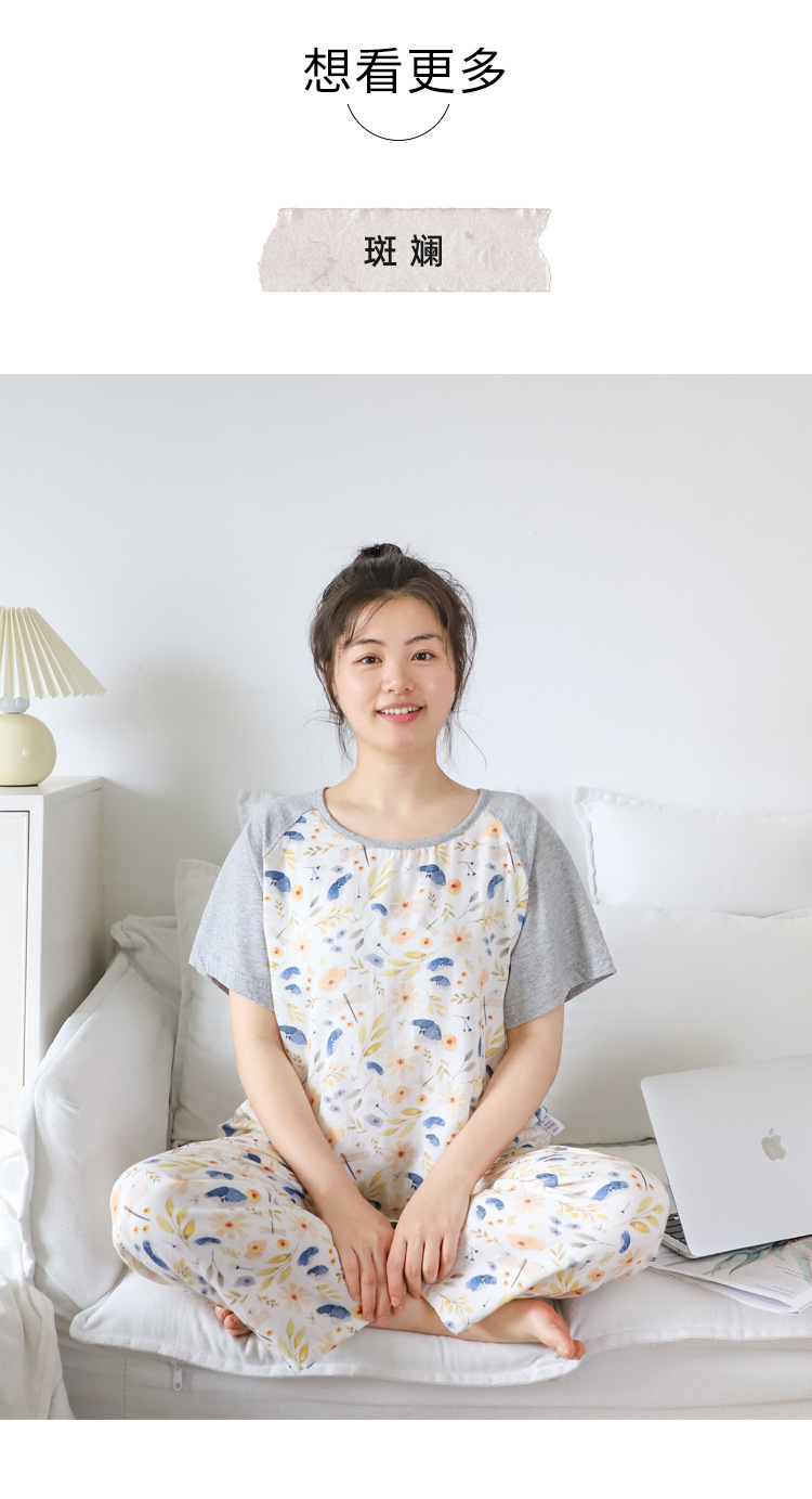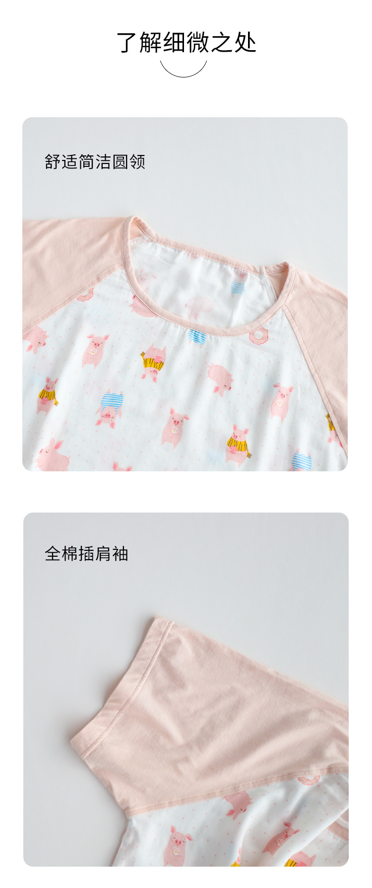 여름용 대나무 면 거즈 홈웨어 여성 세트 시원한 반팔 얇은 라운드넥 부모 자녀 홈웨어 대나무 섬유스토어 가기