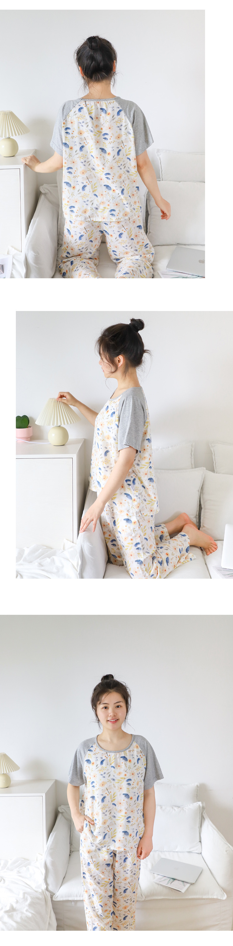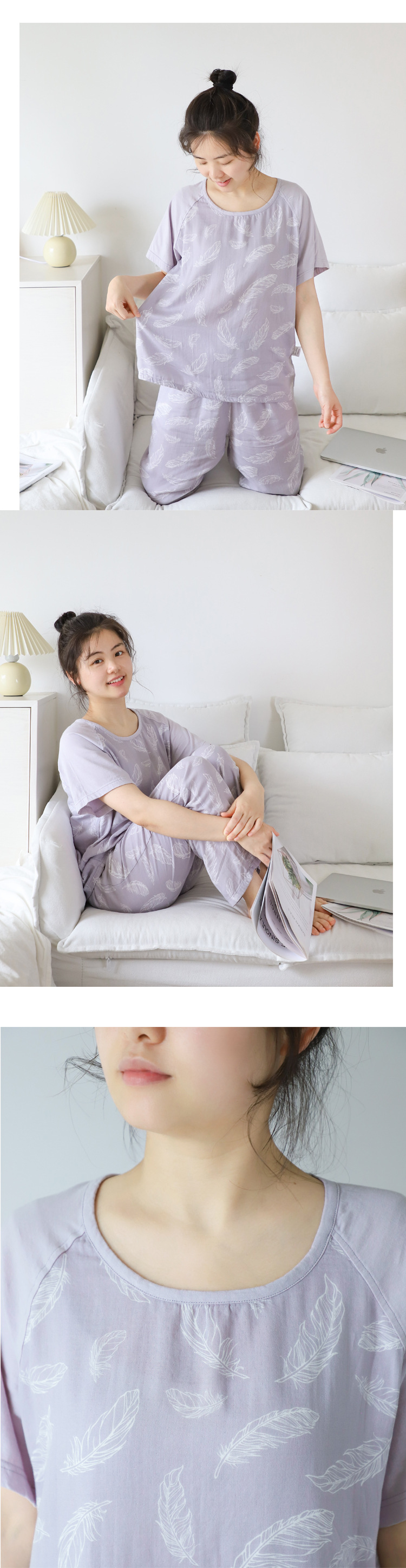 • 지아 얀-성인 더블 레이어 원사 짧은 소매 바지 세트