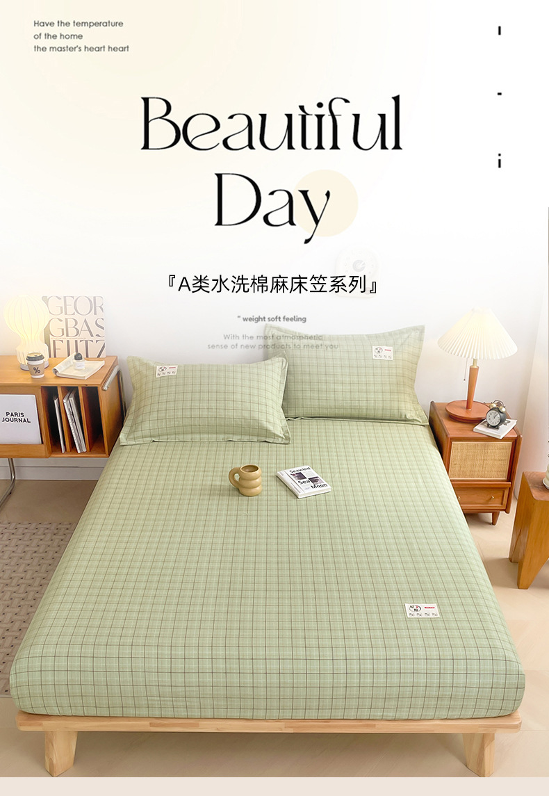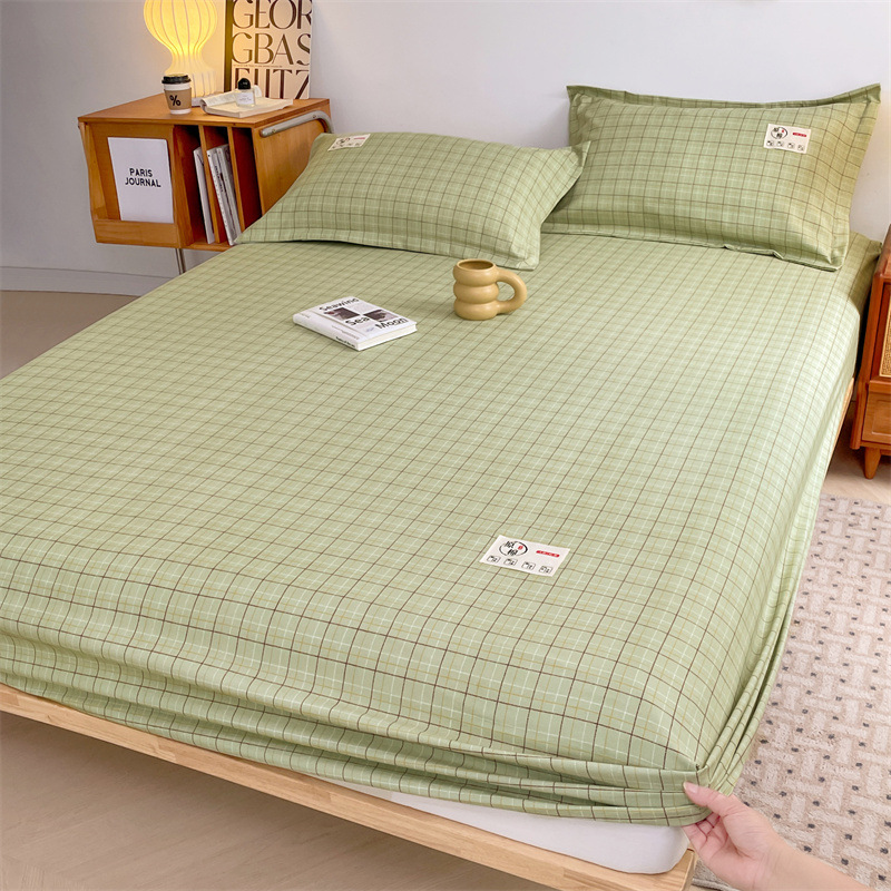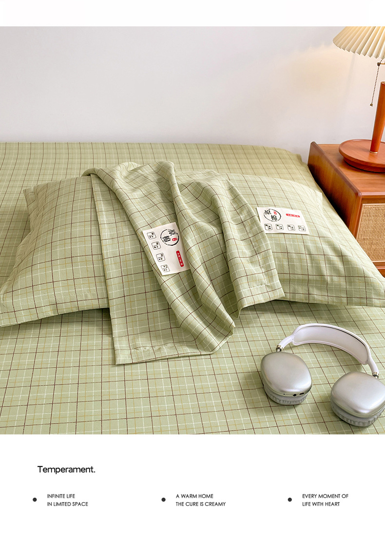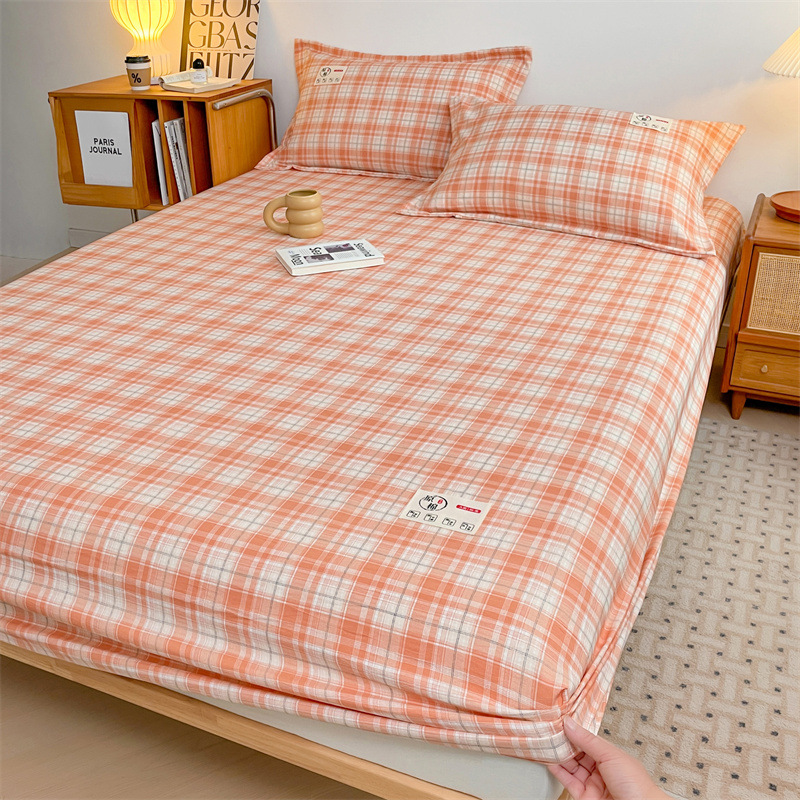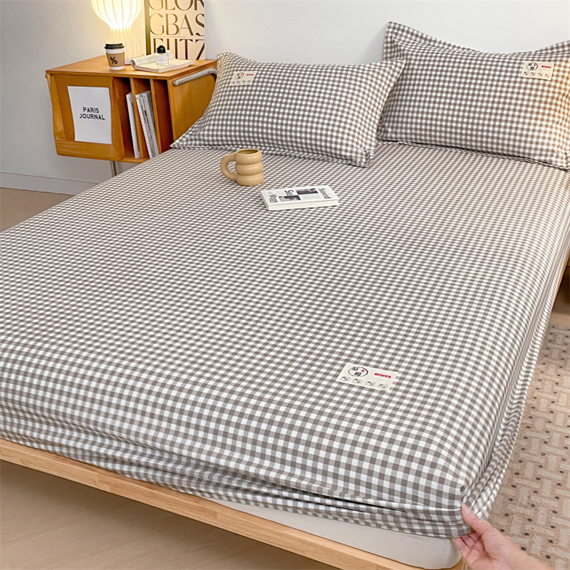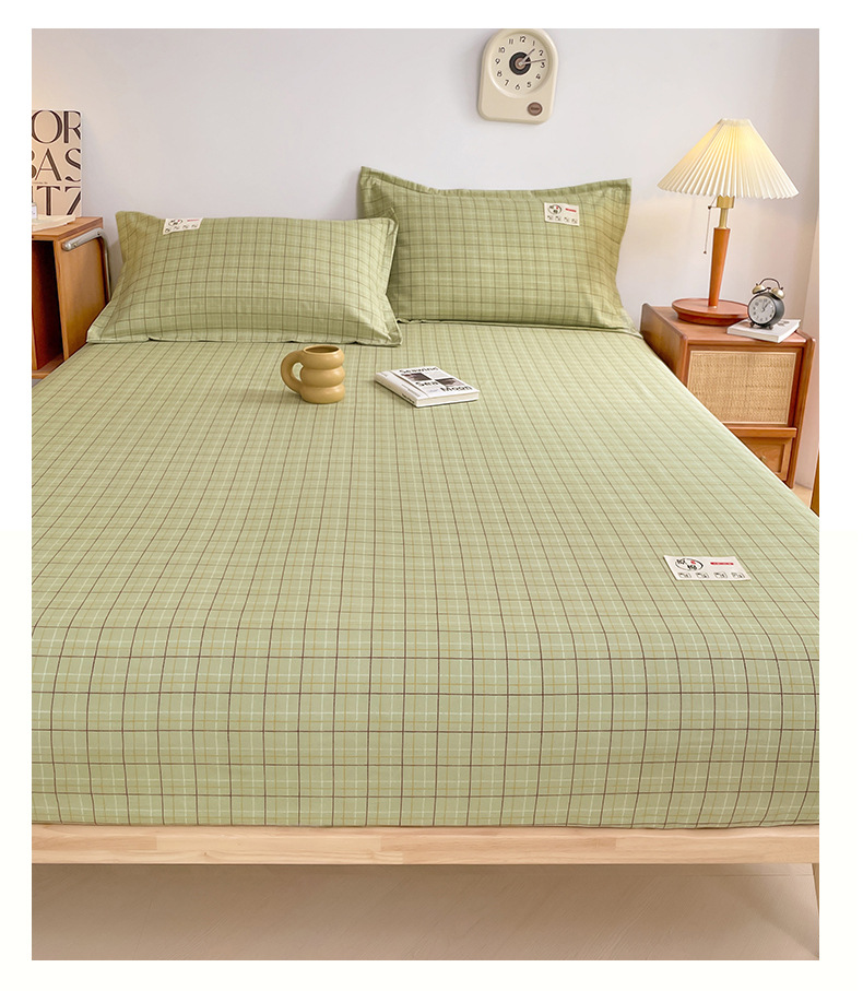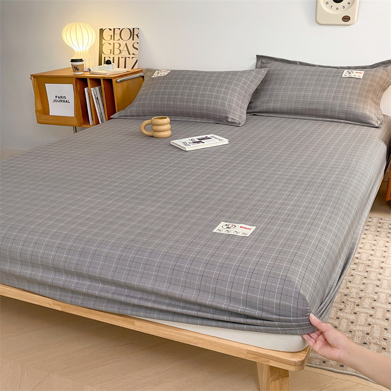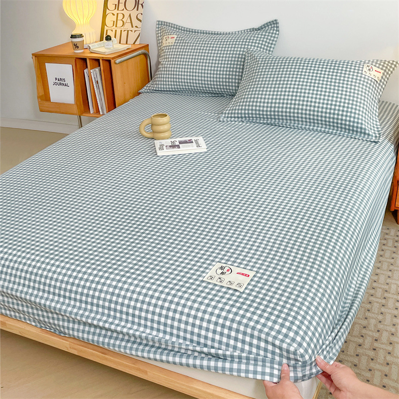 클래스 A 세척 된 면화 및 리넨 단일 층 침대 커버 시몬스 보호 케이스 베개 케이스 간단한 격자 무늬 통기성 열 단단한 침대 시트스토어 가기