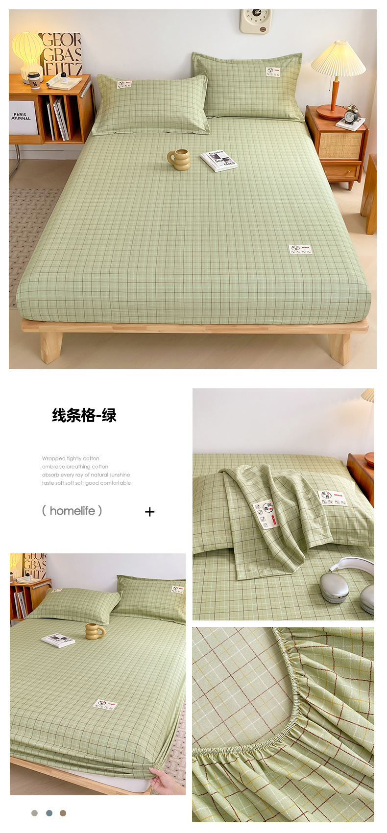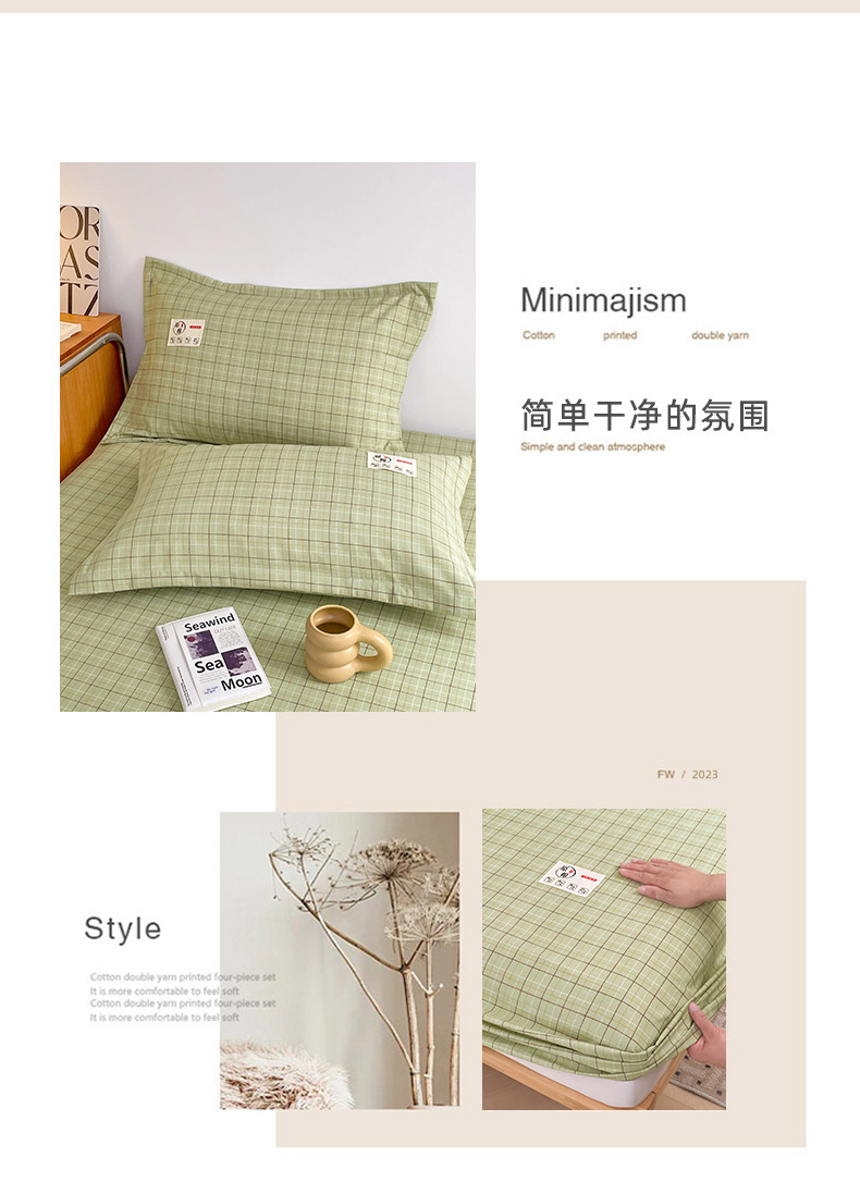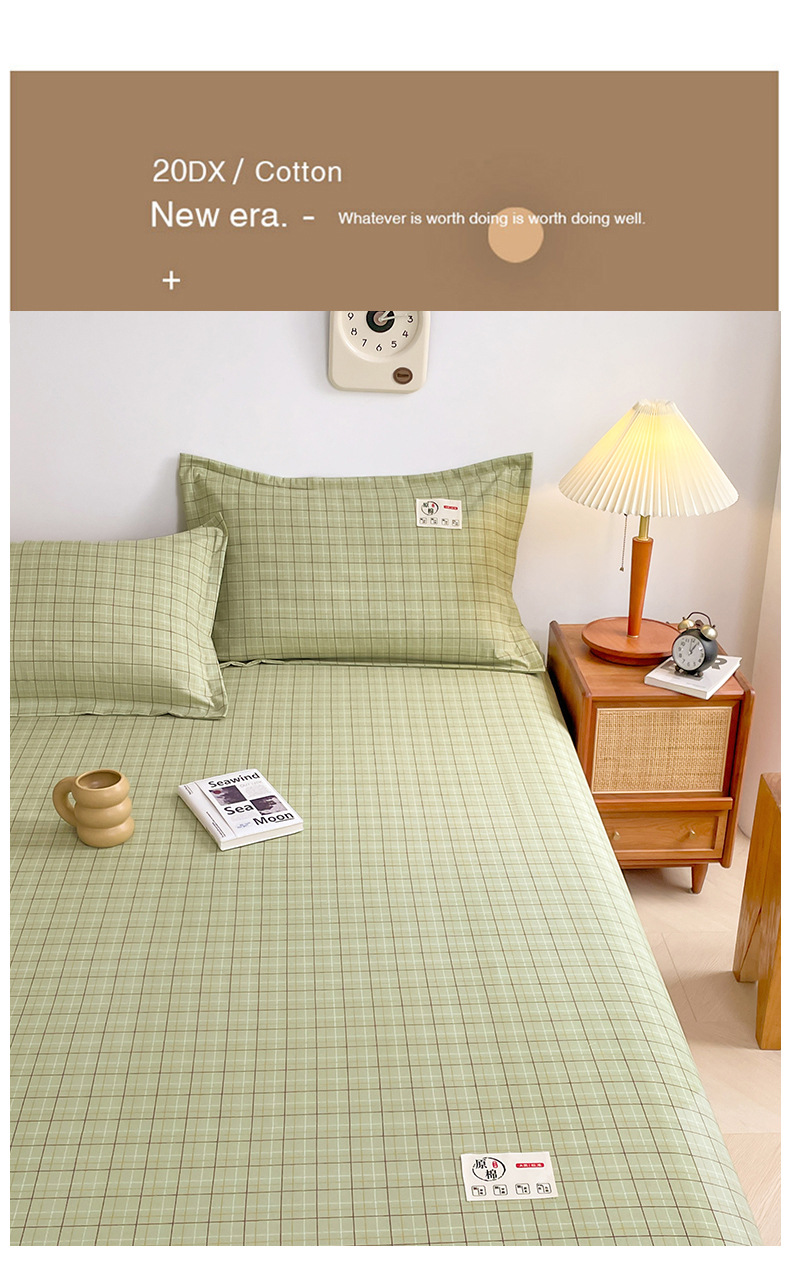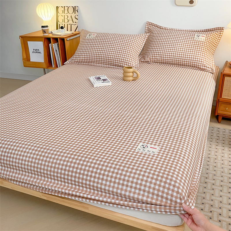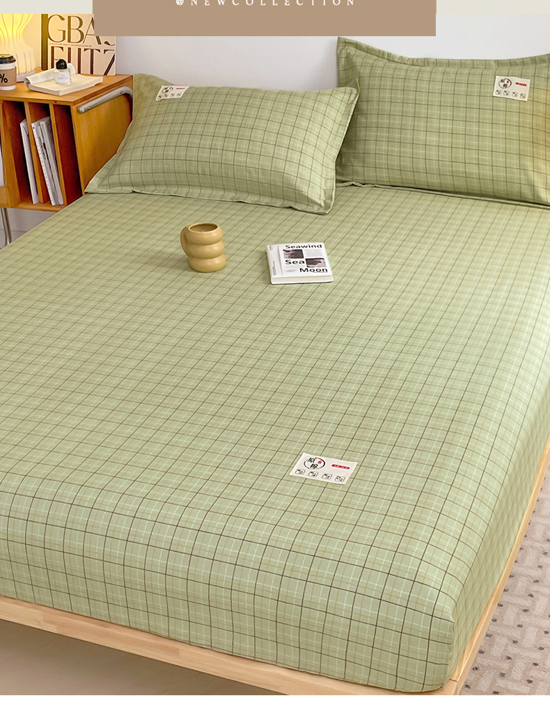 클래스 A 세척 된 면화 및 리넨 단일 층 침대 커버 시몬스 보호 케이스 베개 케이스 간단한 격자 무늬 통기성 열 단단한 침대 시트스토어 가기