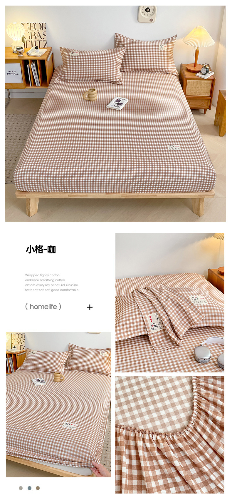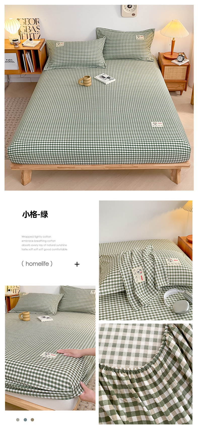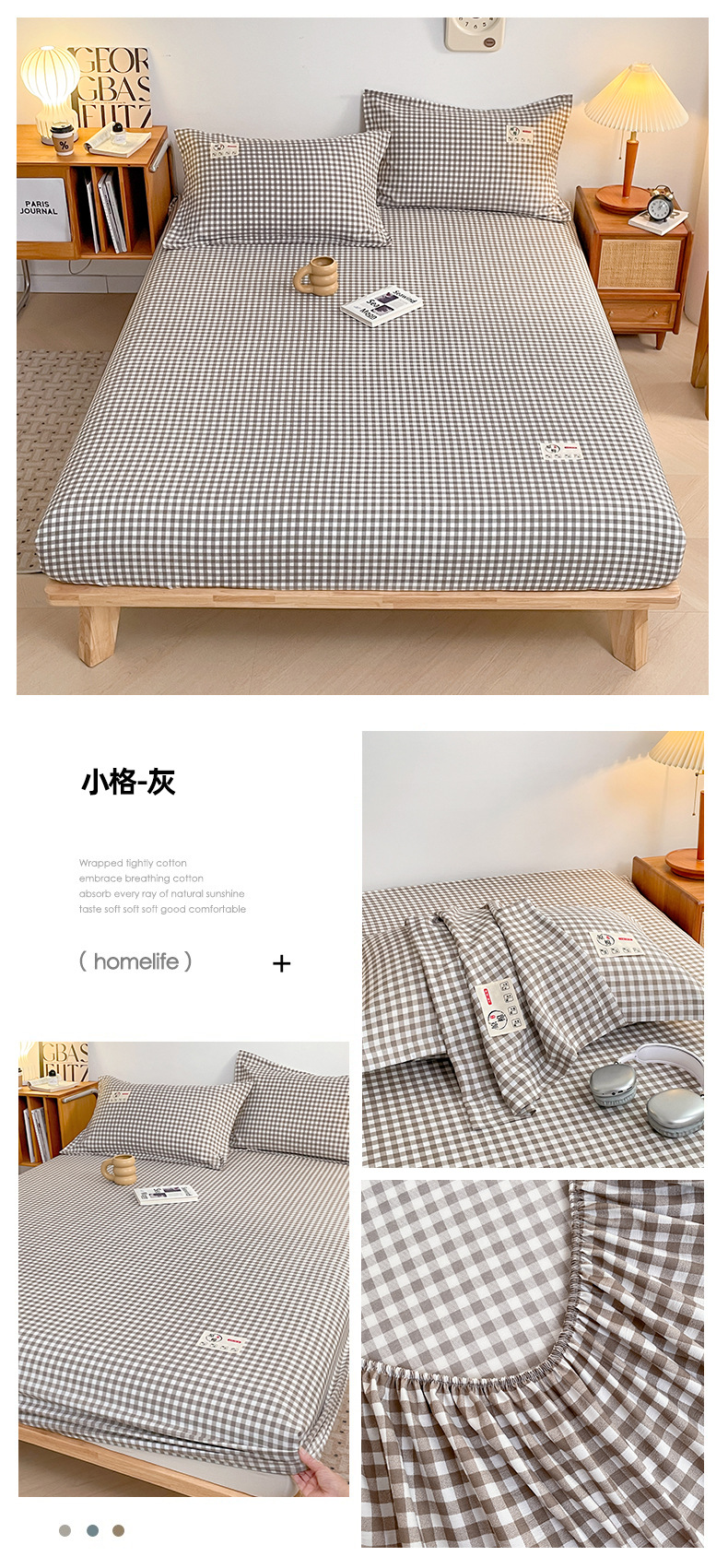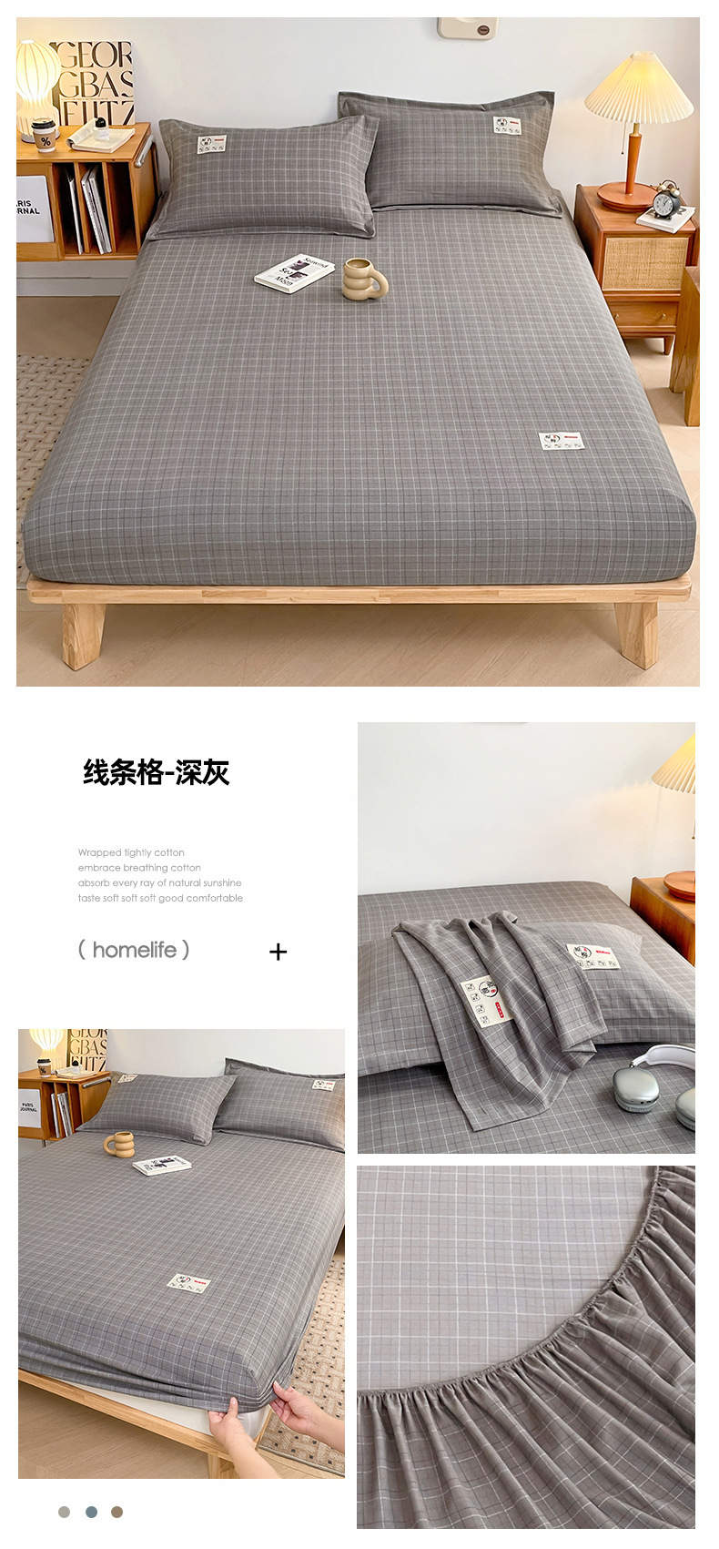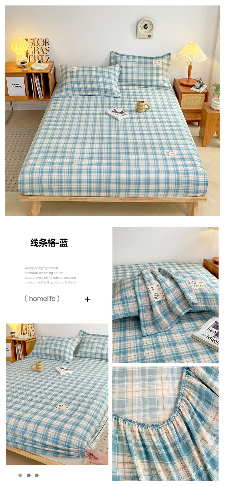 클래스 A 세척 된 면화 및 리넨 단일 층 침대 커버 시몬스 보호 케이스 베개 케이스 간단한 격자 무늬 통기성 열 단단한 침대 시트스토어 가기