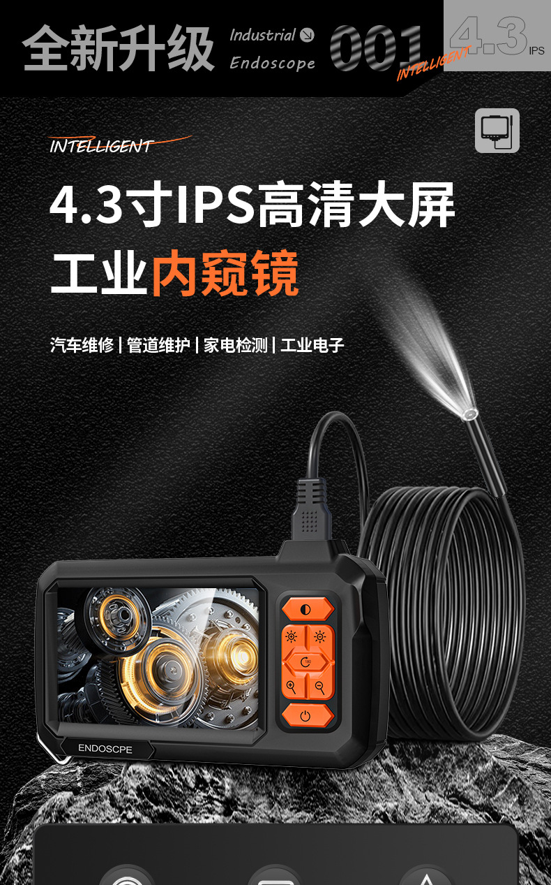 산업용 파이프 라인 내시경 1080p HD 스크린 내시경 4.3 인치 휴대용 내시경