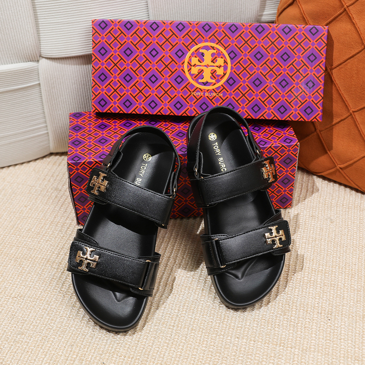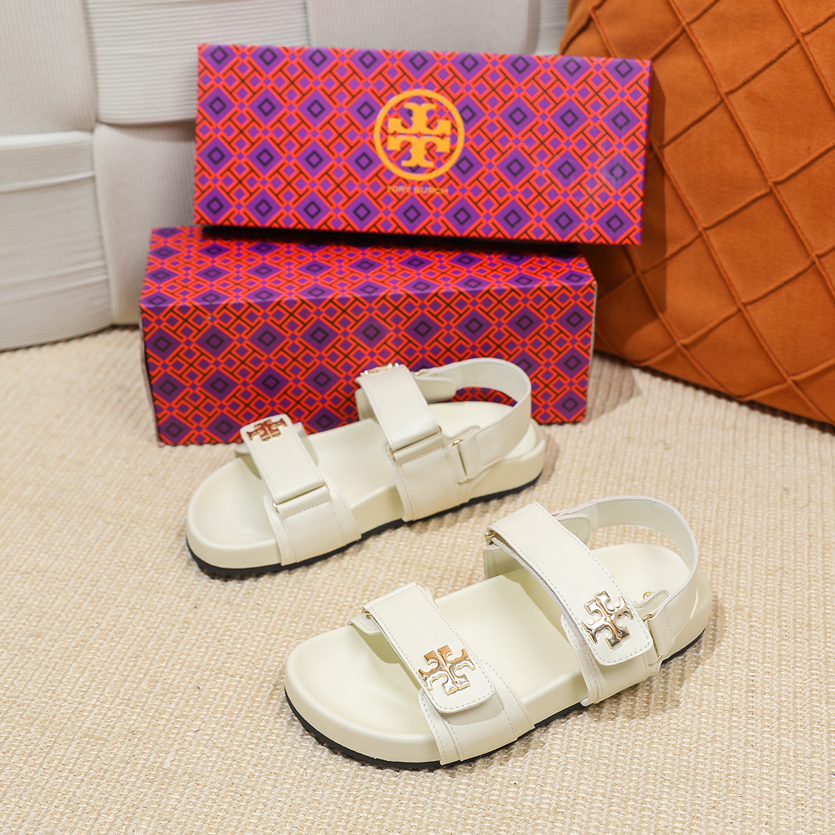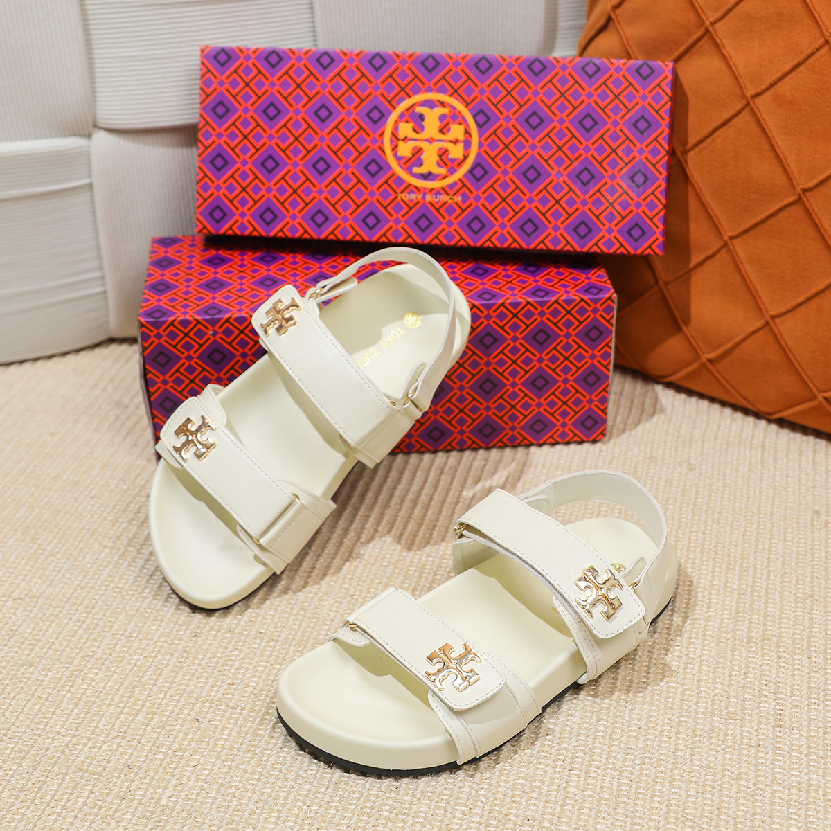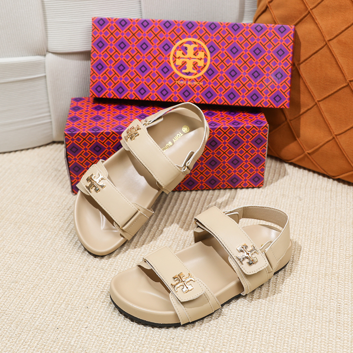 버클이 두꺼운 새 플랫 트립 샌들 강화 편안한 캐주얼 벨크로 올 매치 오픈 발가락 샌들