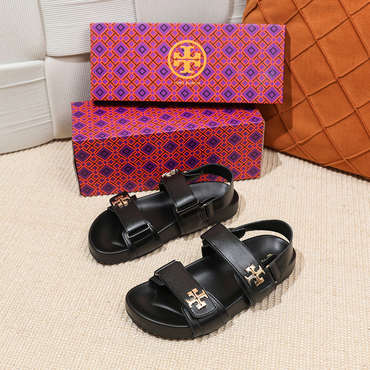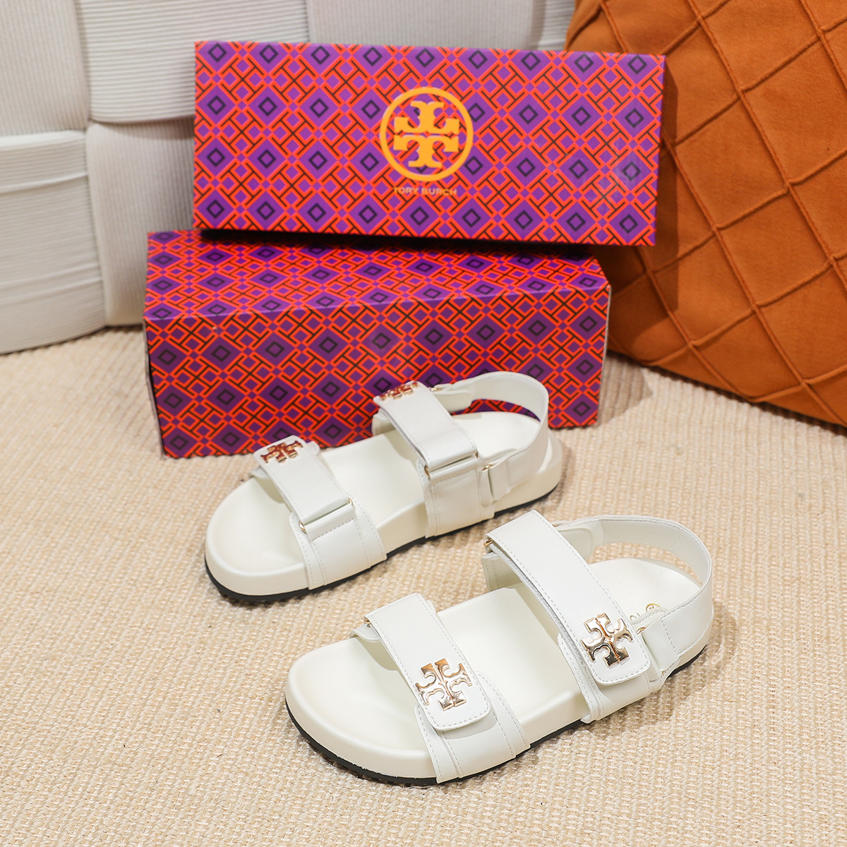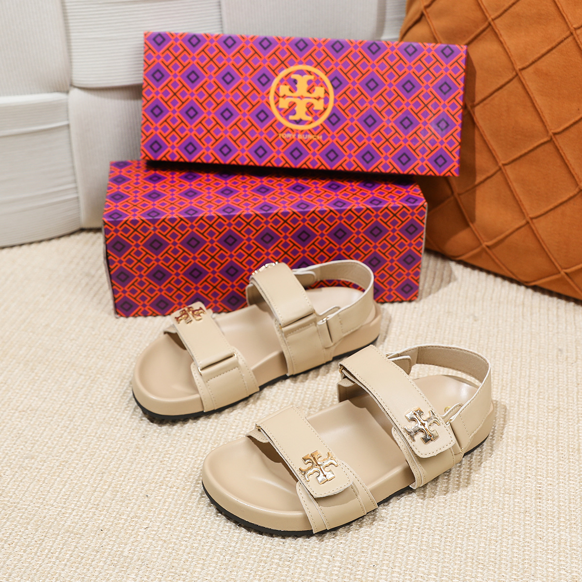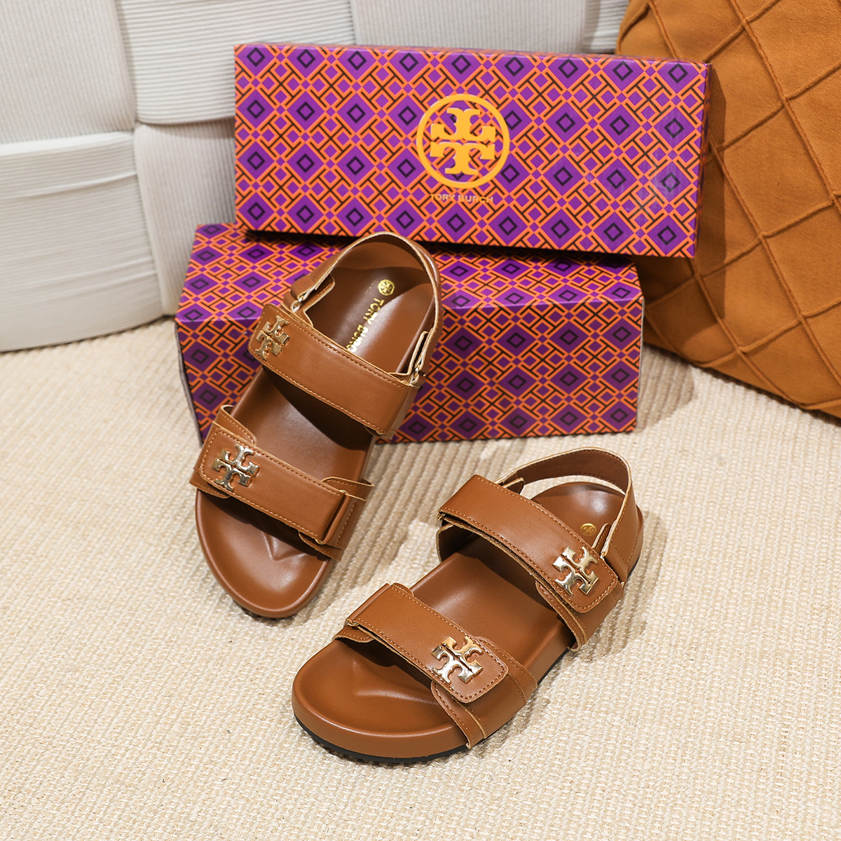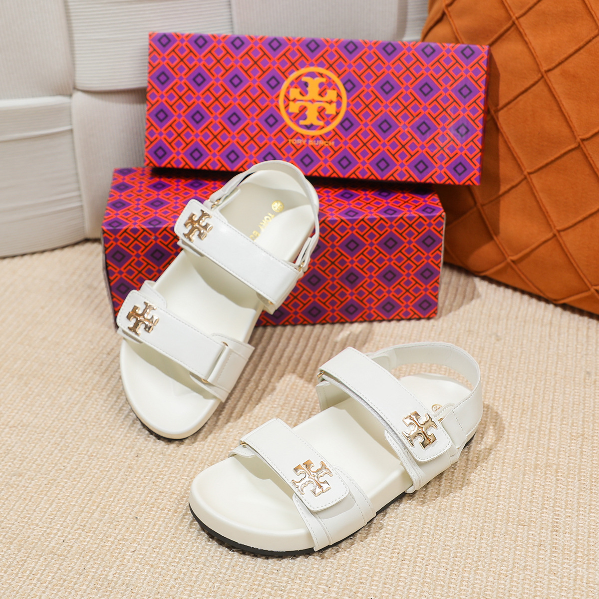 버클이 두꺼운 새 플랫 트립 샌들 강화 편안한 캐주얼 벨크로 올 매치 오픈 발가락 샌들